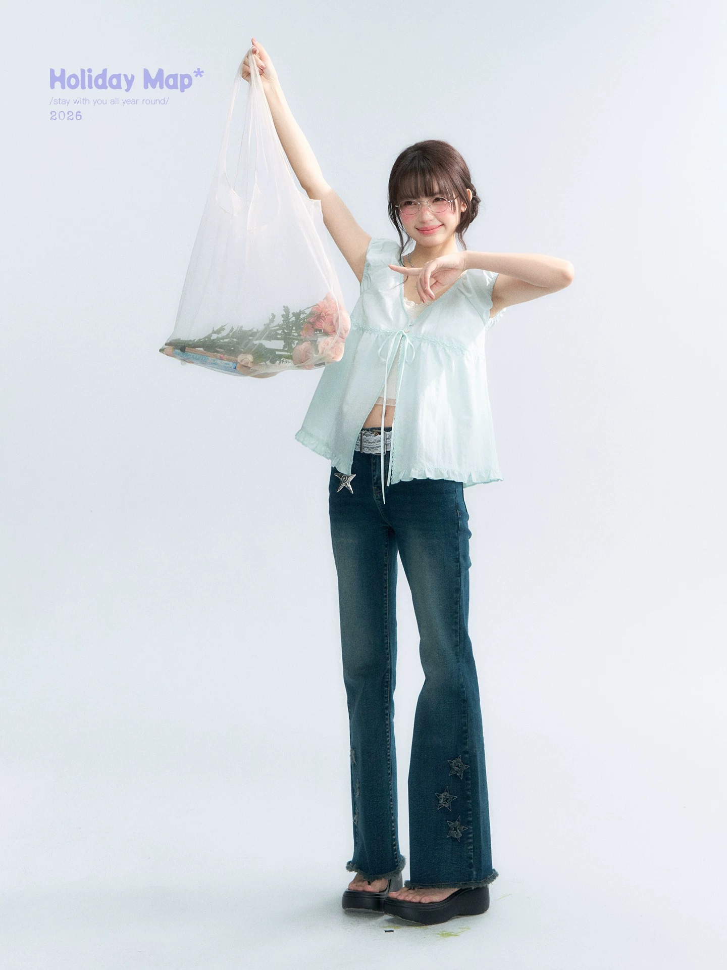 깨진 빛 빛 플래시 라이 경기 서울 주간 실크 프릴 수공 스팽글 디자인 행침 목 레이스업 조끼