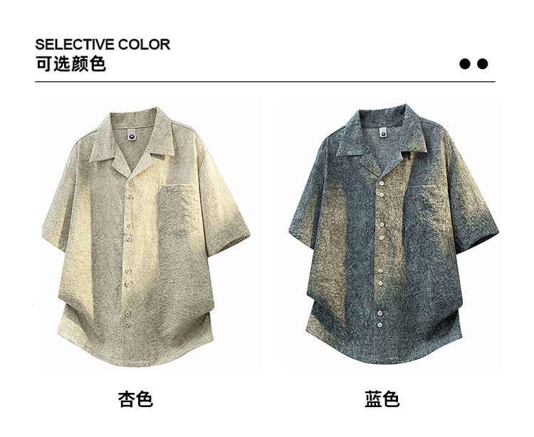실사 여름 새로운 쿠바 칼라 반팔 셔츠 남자 복잡한 고대 돈 바람 질감 센스 캐주얼 셔츠