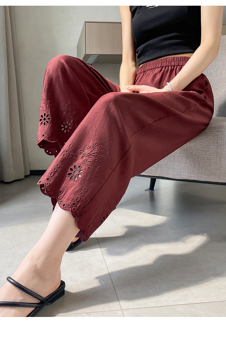 실사 2026 여름 새로운 아마 9부 바지 얼음 실크 자외선 차단 레이스 하이웨이스트 할란 캐주얼 바지 여성