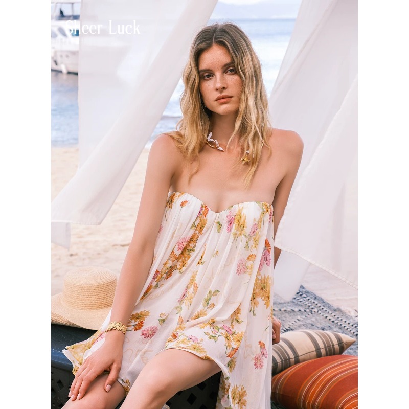 첸 주 오족 법사 같은 단락 sheer luck thiri 고급 센스 쉬폰 튜브탑 리본 미니 스커트 여성 드레스