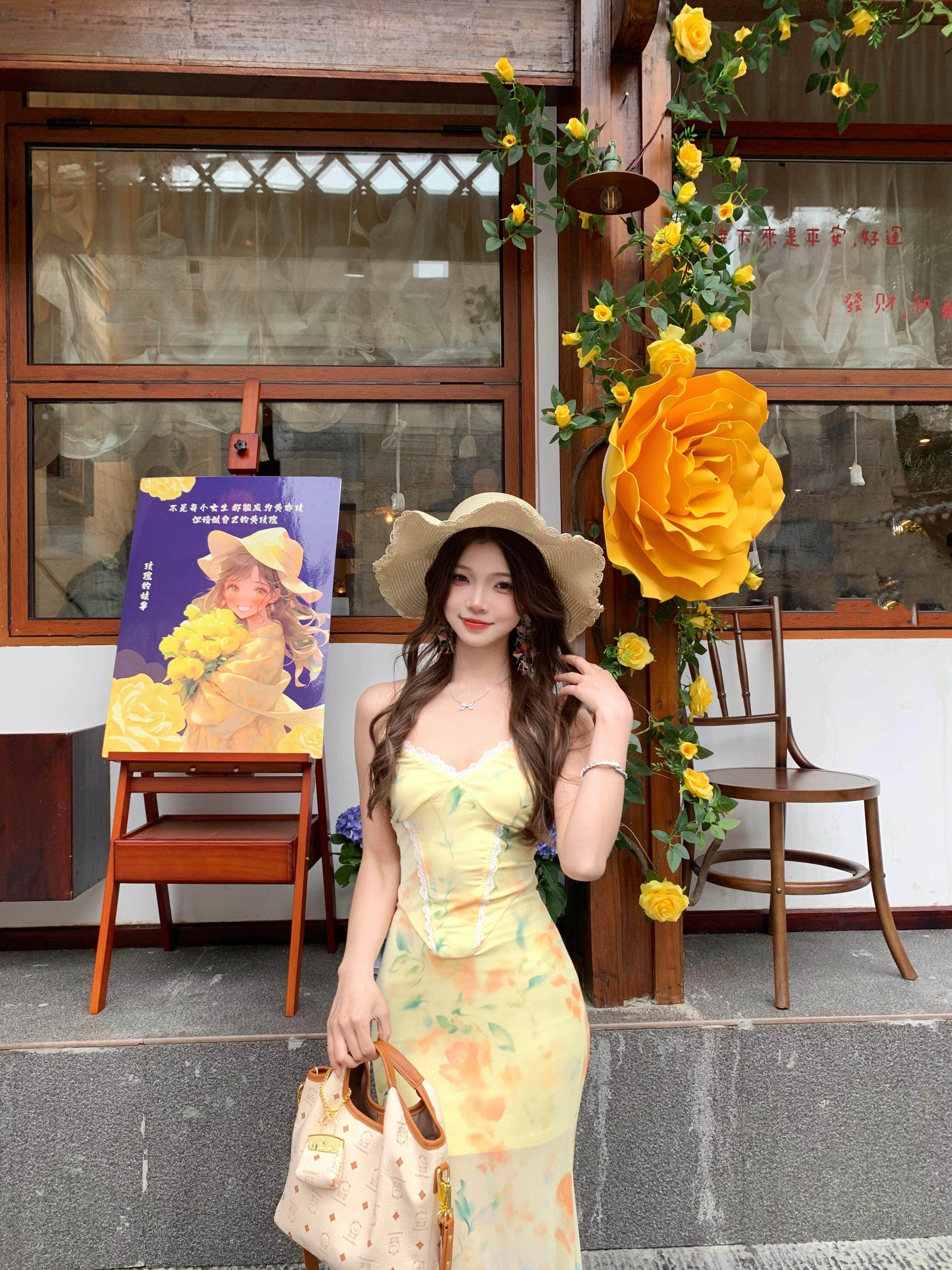 슈퍼 요정 센 부서 드레스 여름 새로운 작은 날다 소매 달콤함 품격 부드러운 바람 프랑스식 꽃무늬 중간 길이 스커트