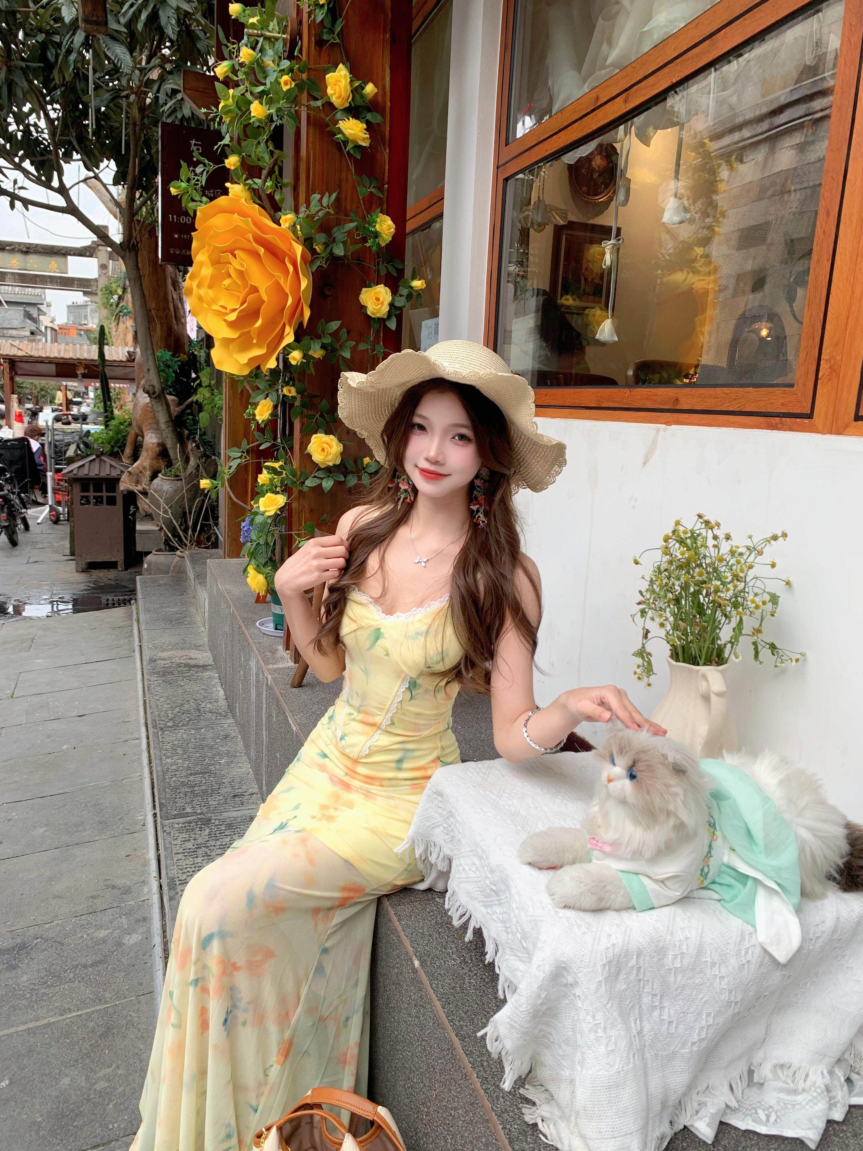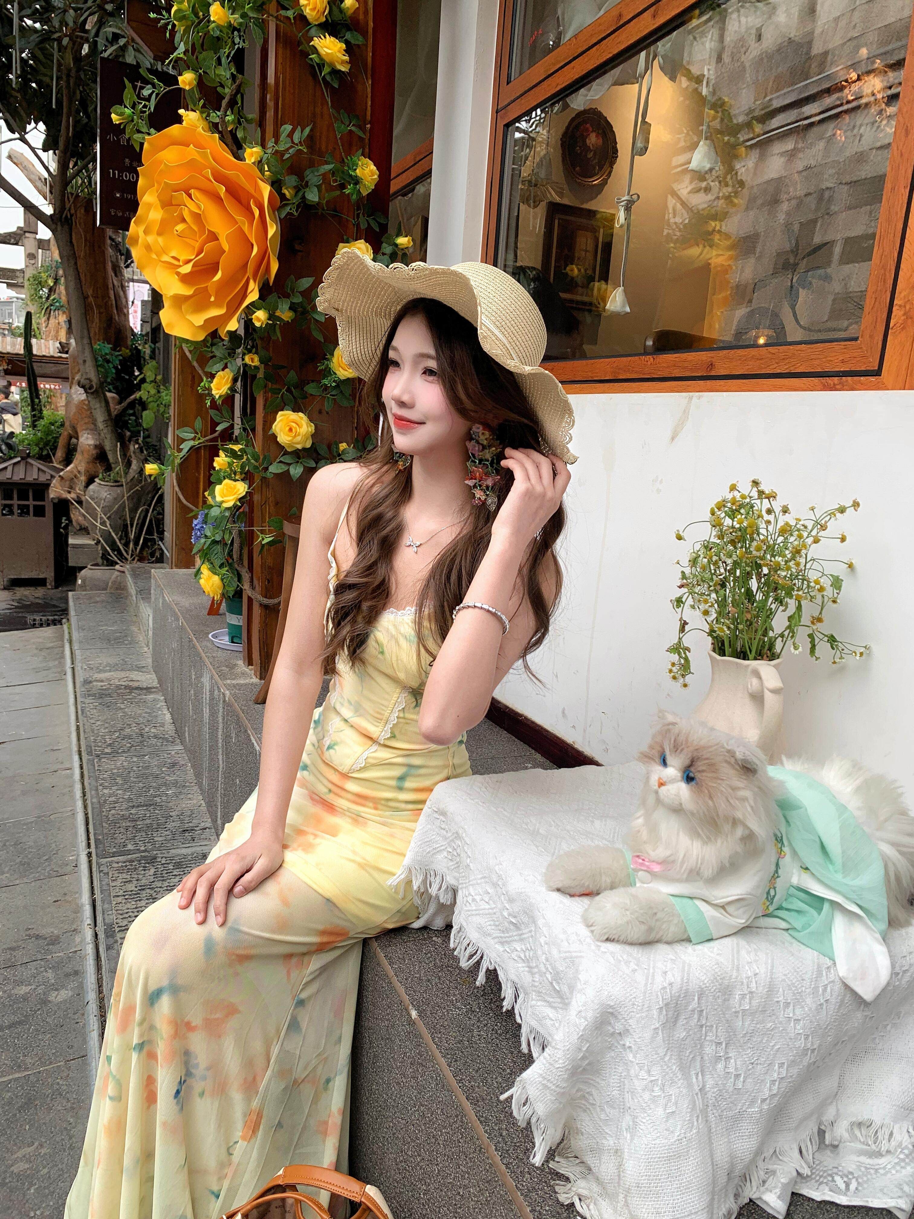 순수한 욕망 바람 프랑스식 슬립 여성 드레스 여름 작은 키 150 몸매 가꾸기 롱 스커트 섹시함 트임 불규칙 치마