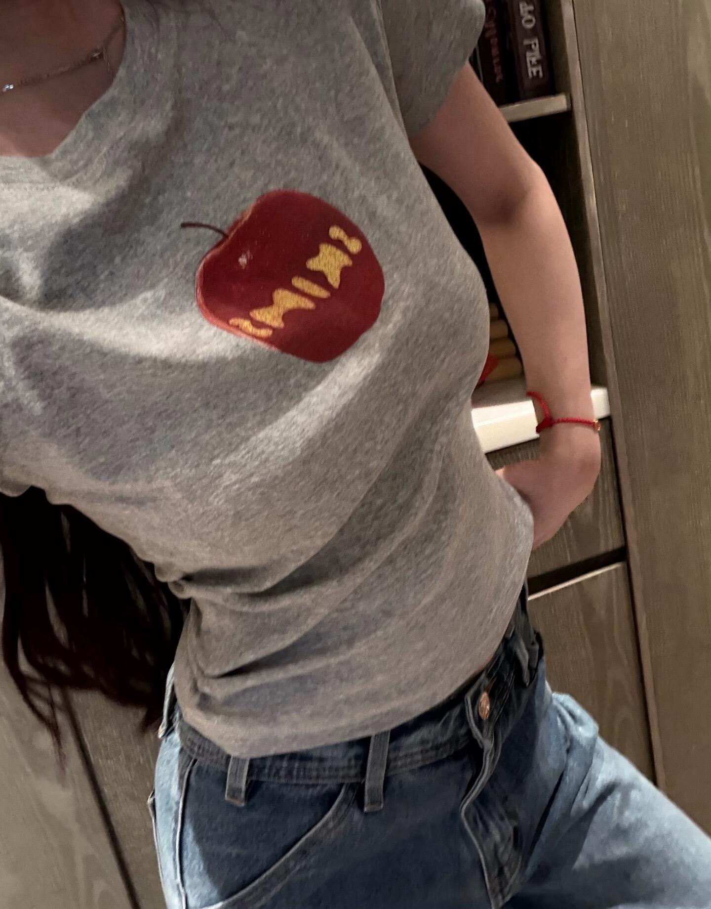 토마토 과일 재미있는 낙서 반팔 티셔츠 여성 2026 여름 한 부서 디자인 긍정적 인 어깨 루즈핏 맨위