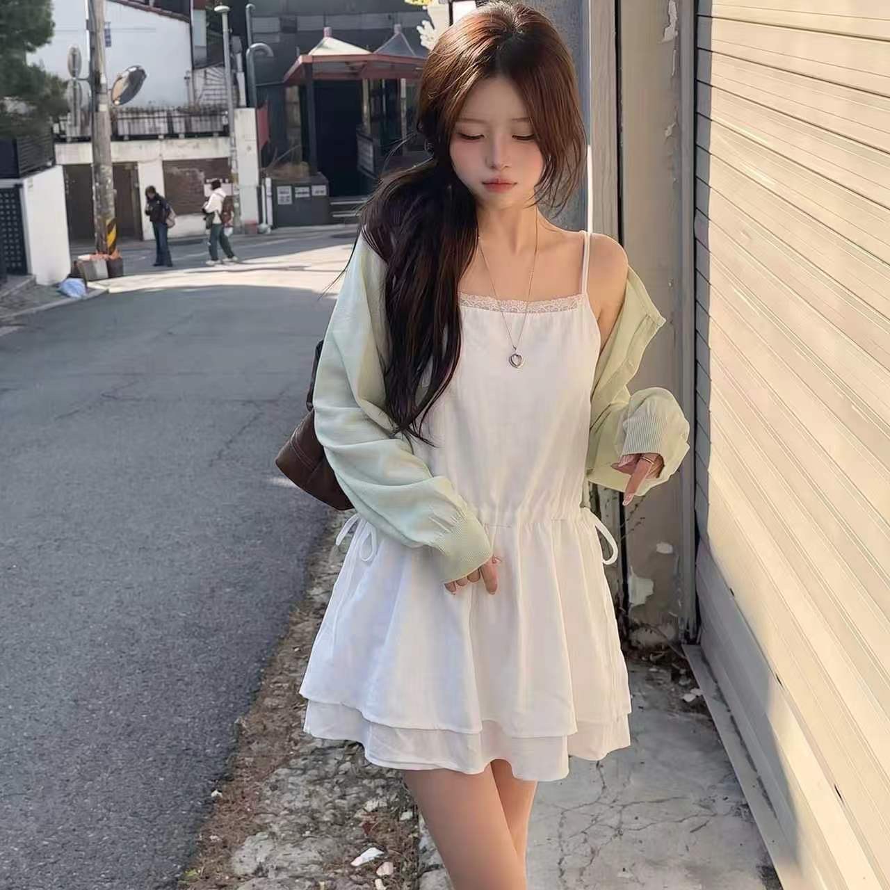 있음 밖으로 2026 레이스 조각 V넥 케이크 슬립 드레스