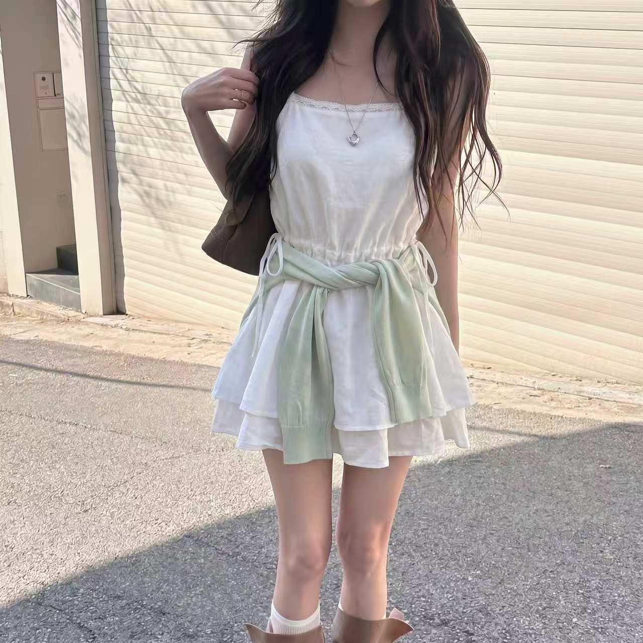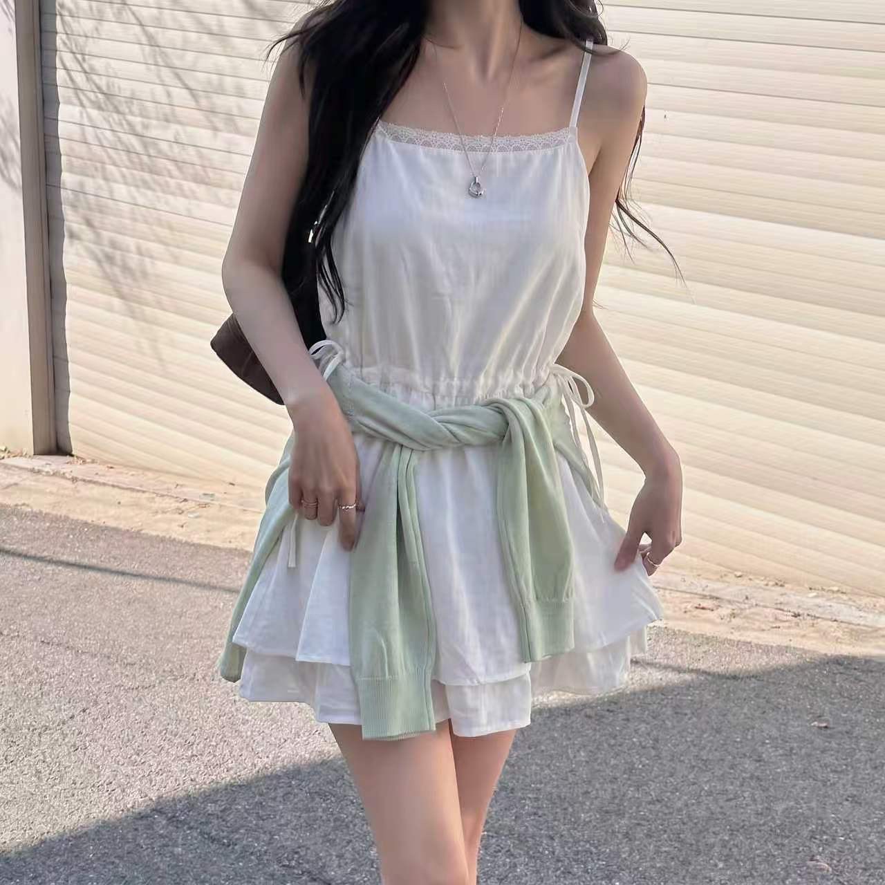 재고 있음 chic 다용도 패치워크 레이스 허리 펌프 로프 만나는 외출용 슬립 드레스