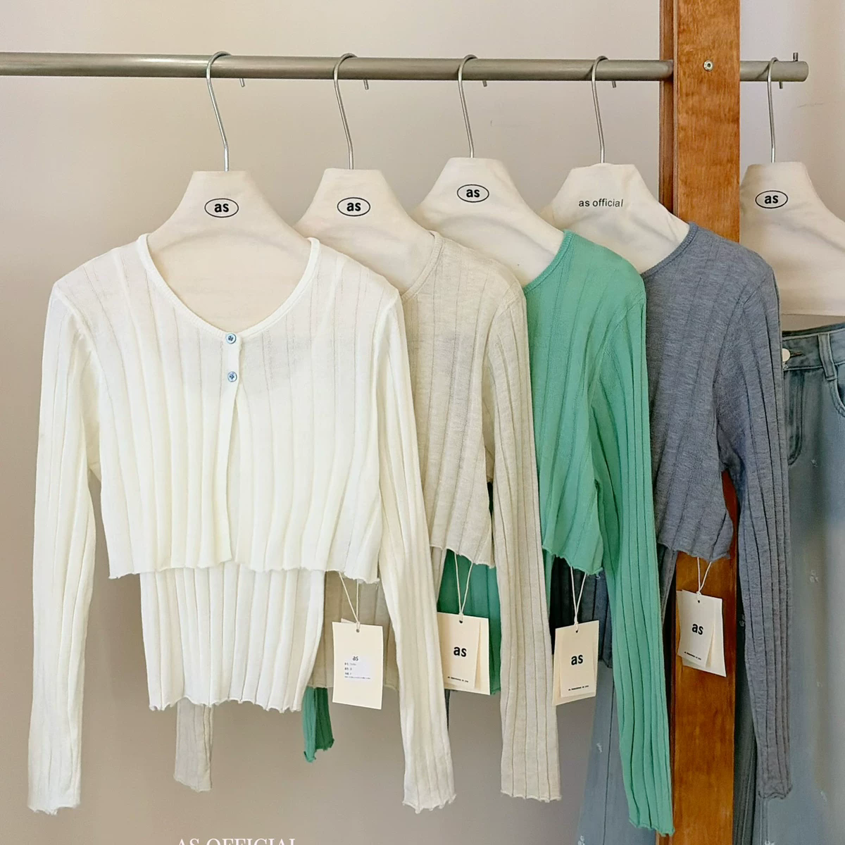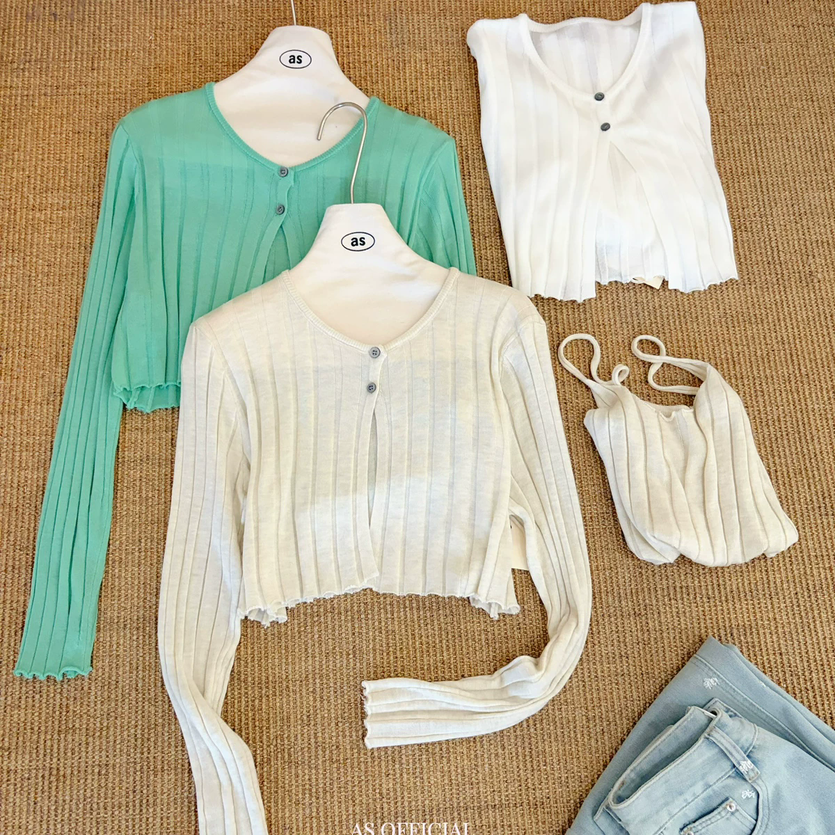 as official- 이른 봄 조끼 라운드 넥 다용도 캐주얼 니트 오픈 가디건 세트