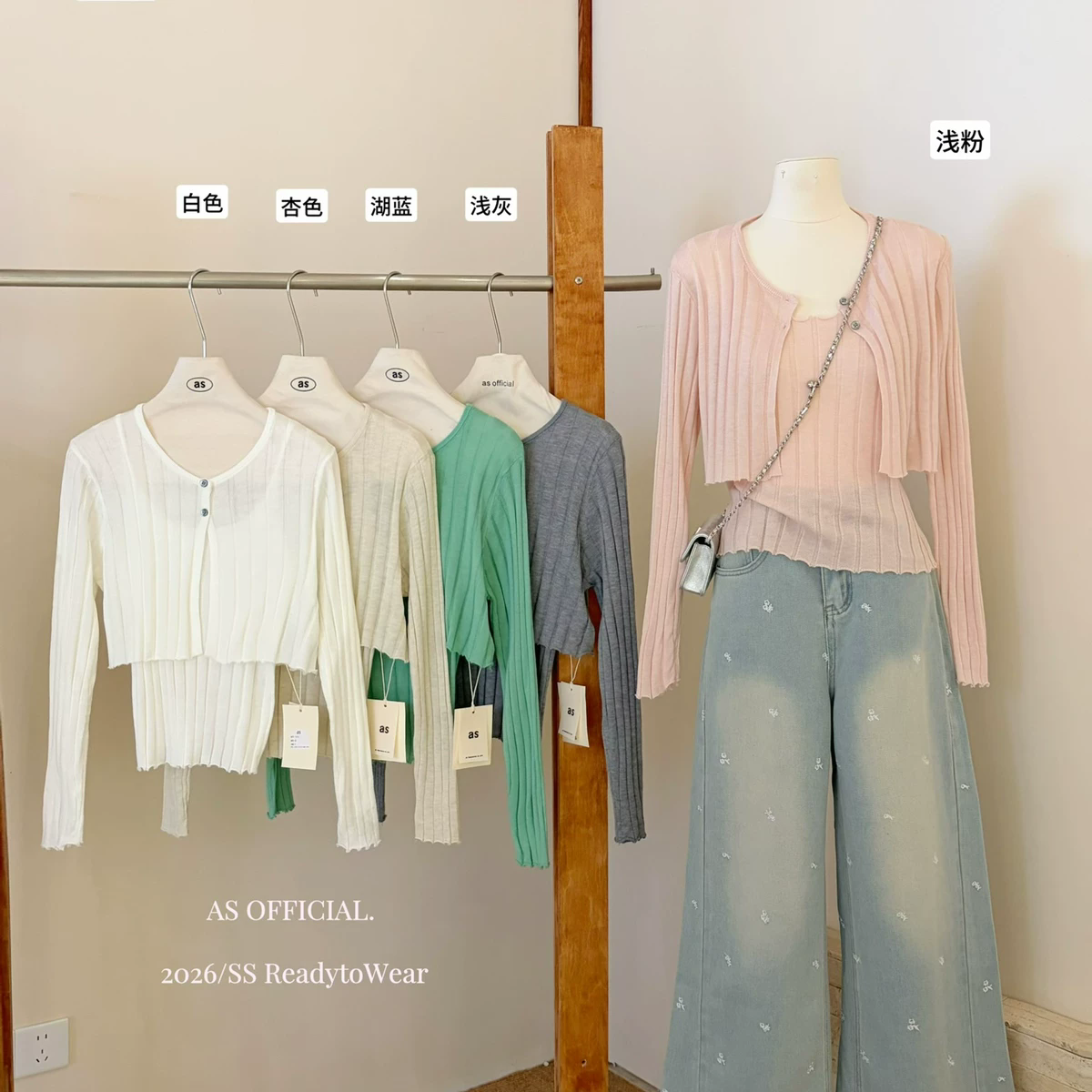 자수 홀로우 아웃 니트 오픈 가디건 여성 2026 여름 새로운 쇼트 스타일 레이스업 긴팔 자외선 차단 블라우스 다용도 맨위