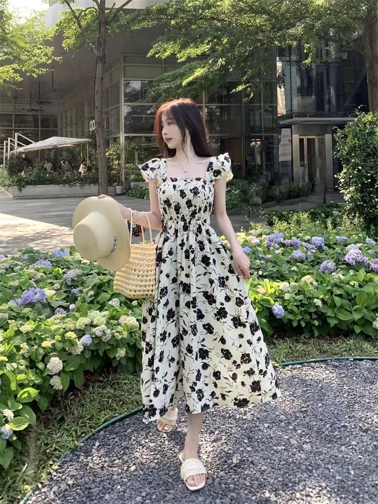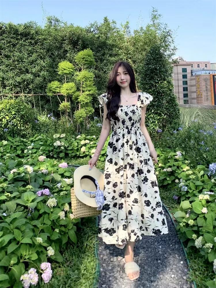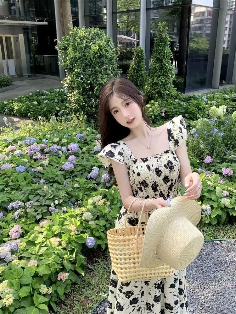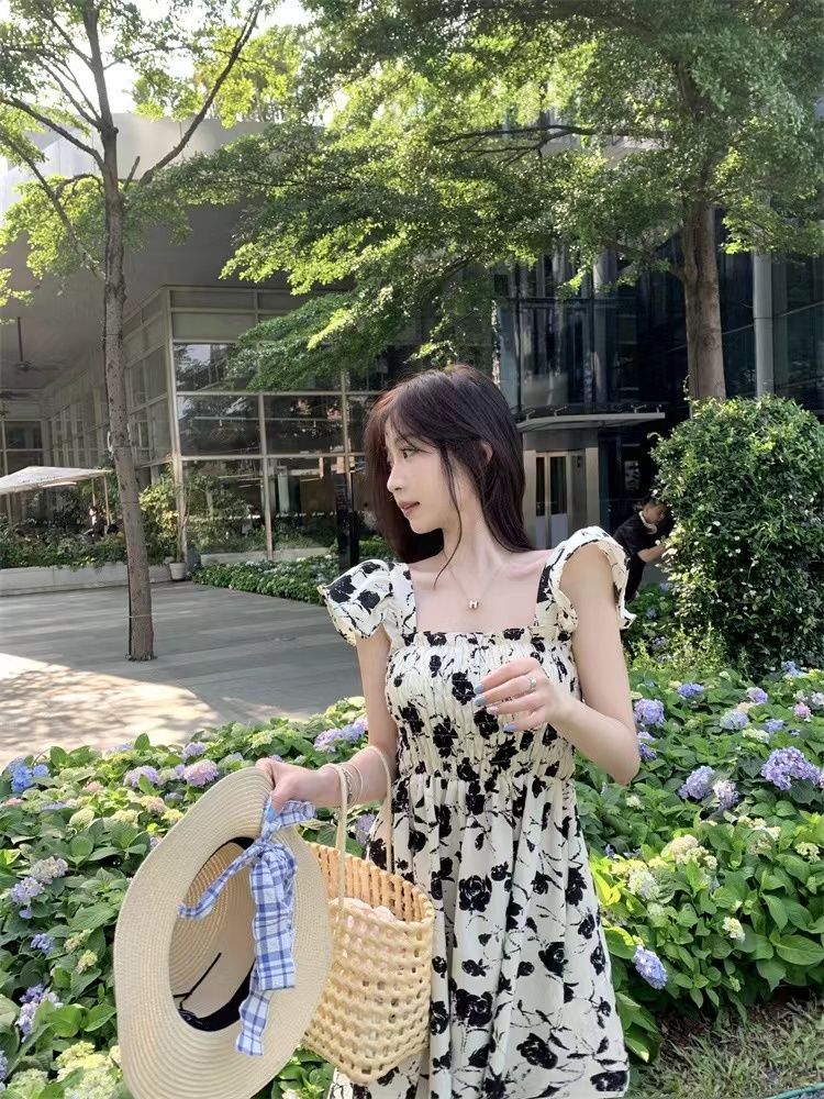 슈퍼 요정 센 부서 드레스 여름 새로운 작은 날다 소매 달콤함 품격 부드러운 바람 프랑스식 꽃무늬 중간 길이 스커트