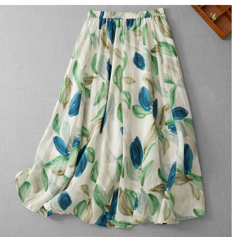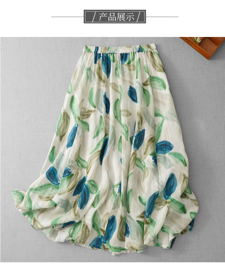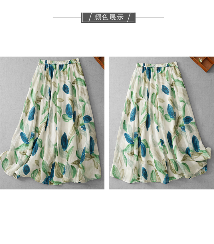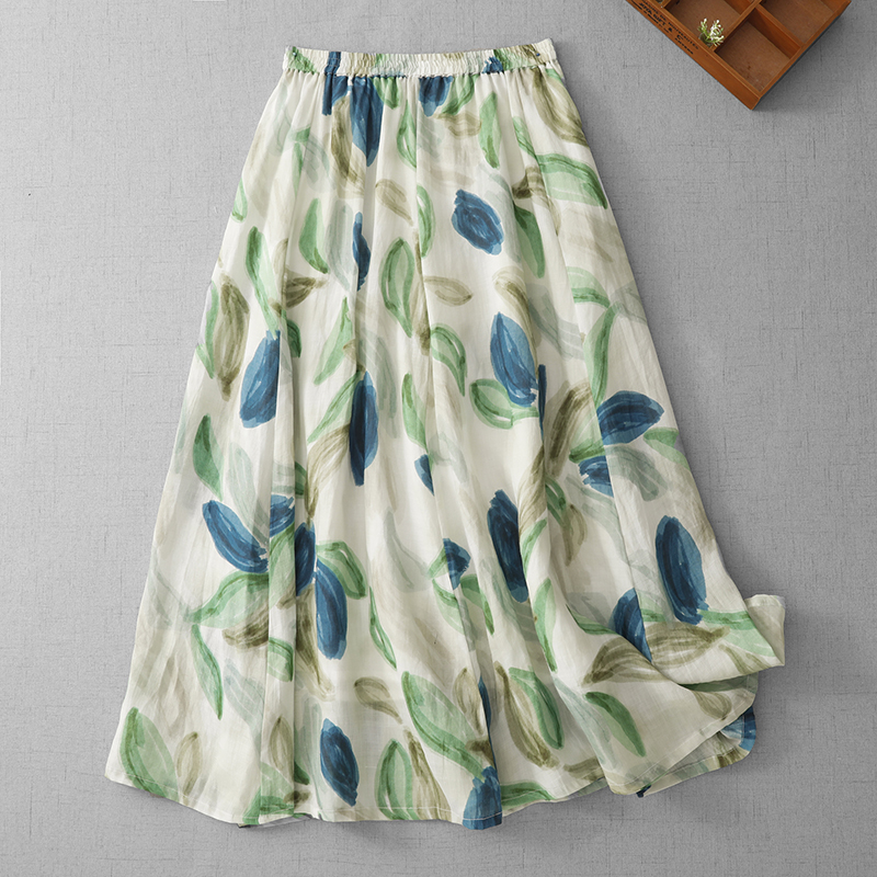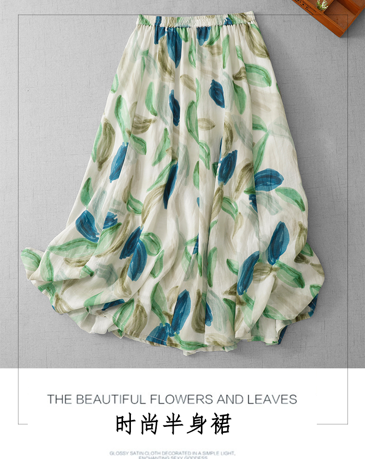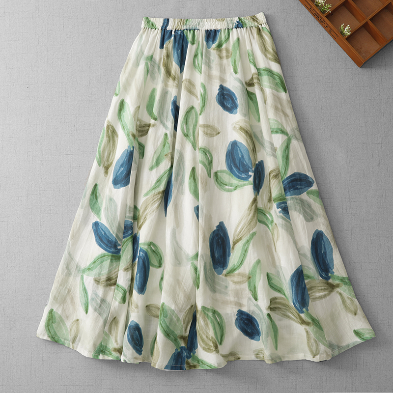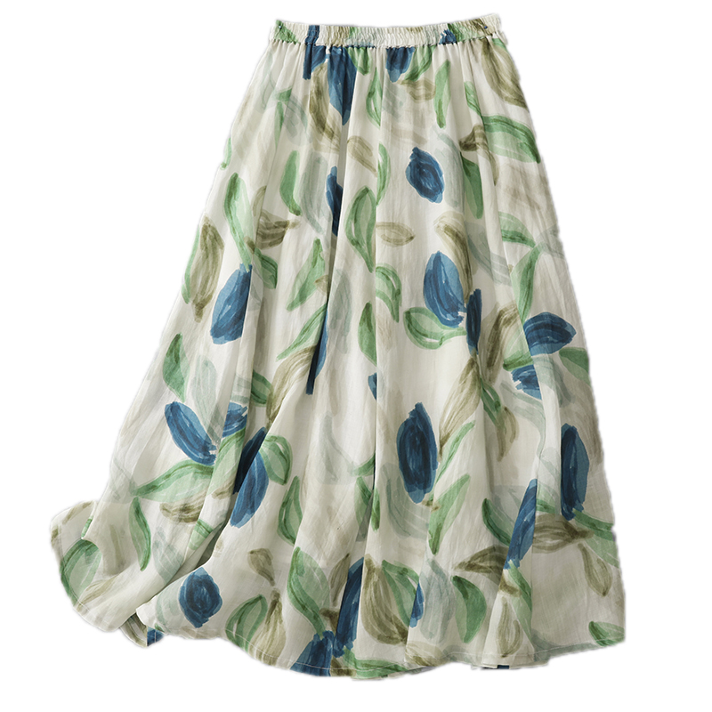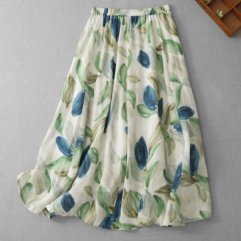 3929 재고 있음 순면 프린트 원단 프랑스식 유화 바람 꽃무늬 반신 스커트 여성 26 새로운 부드러운 바람을 피우다 롱 스커트