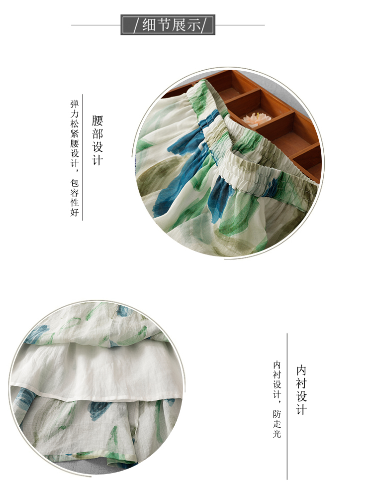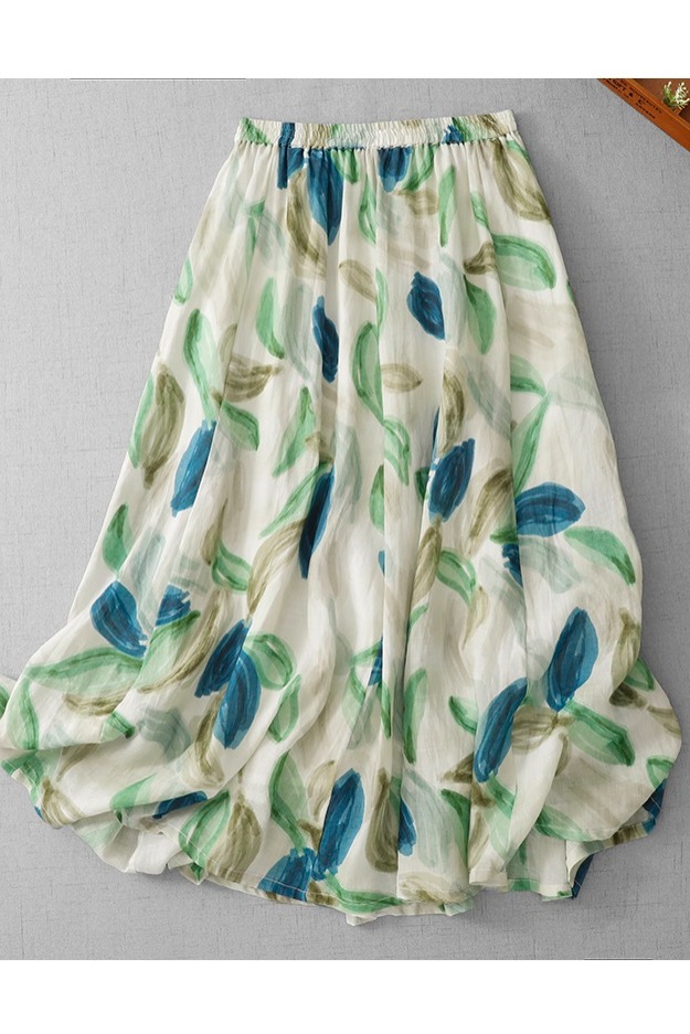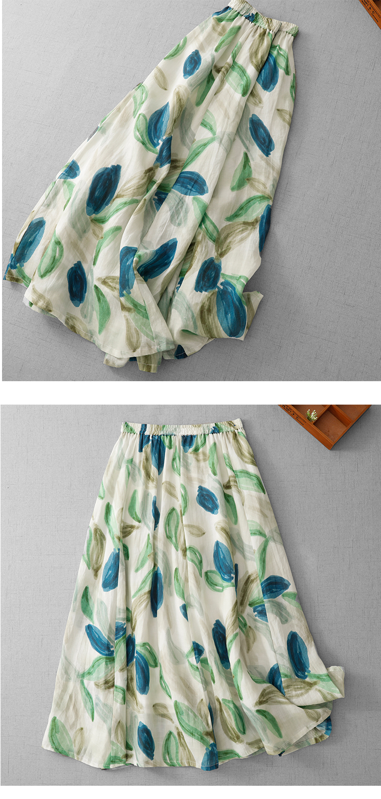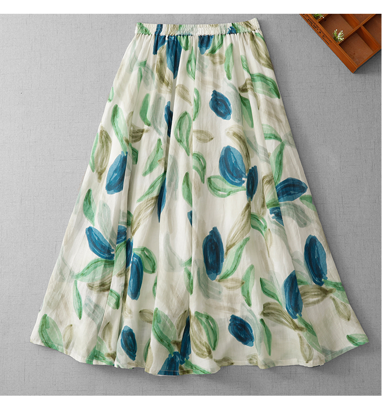 3929-1 녹색 실사 재고 있음 페인팅 낙서 면 린넨 한 마디 슬림해 보이는 중간 길이 반신 스커트 직접 만든 2026 여름