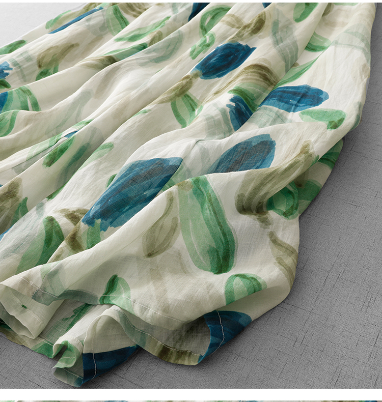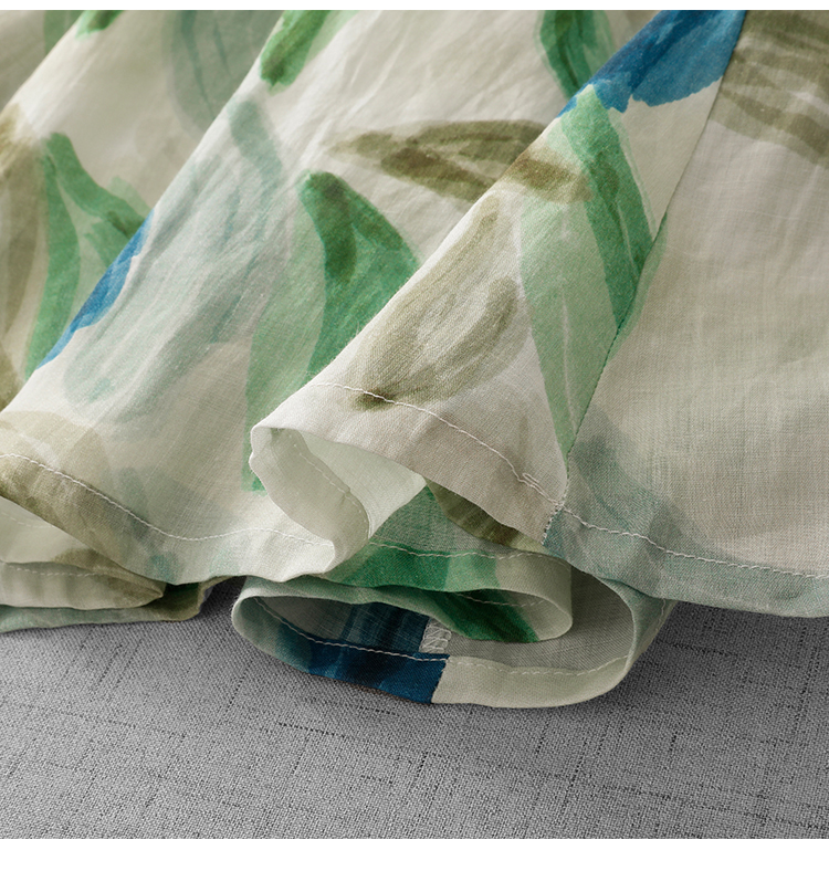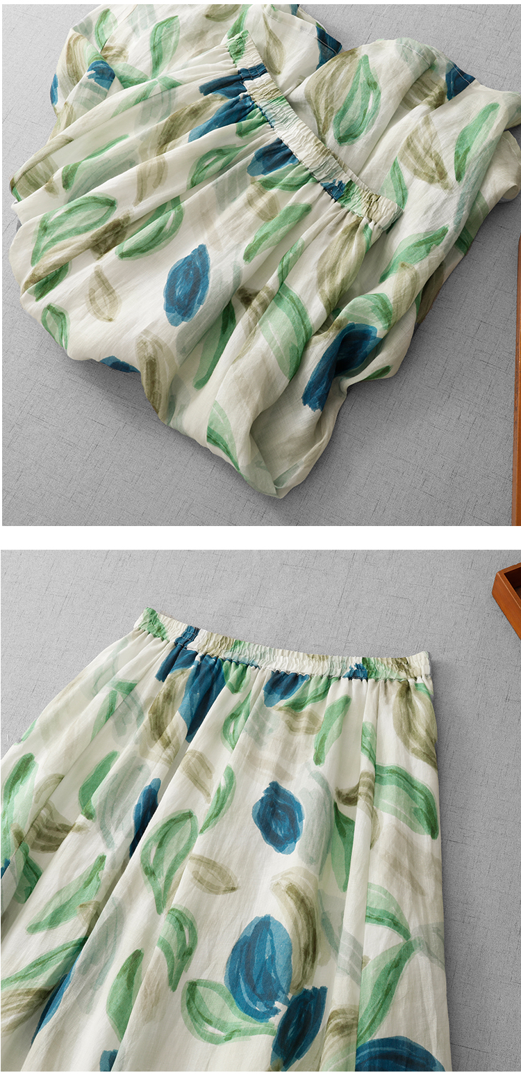3927 실사 문예 좋은 제직 면 꽃무늬 신제품 테두리 작은 주머니 7부 소매 루즈핏 여름 전원 바람 롱 스커트