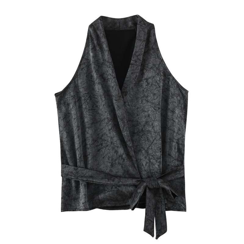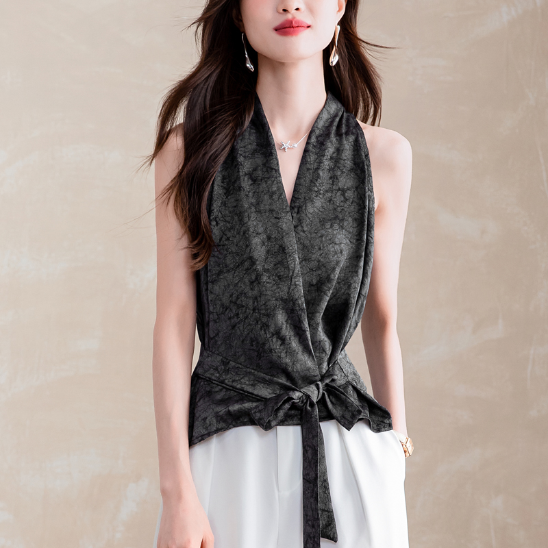 그리고 ~까지 화려함 아세트산 공단 민소매 맨위 여성 여름 행침 목 캐미솔 디자인 센스 작은 대중