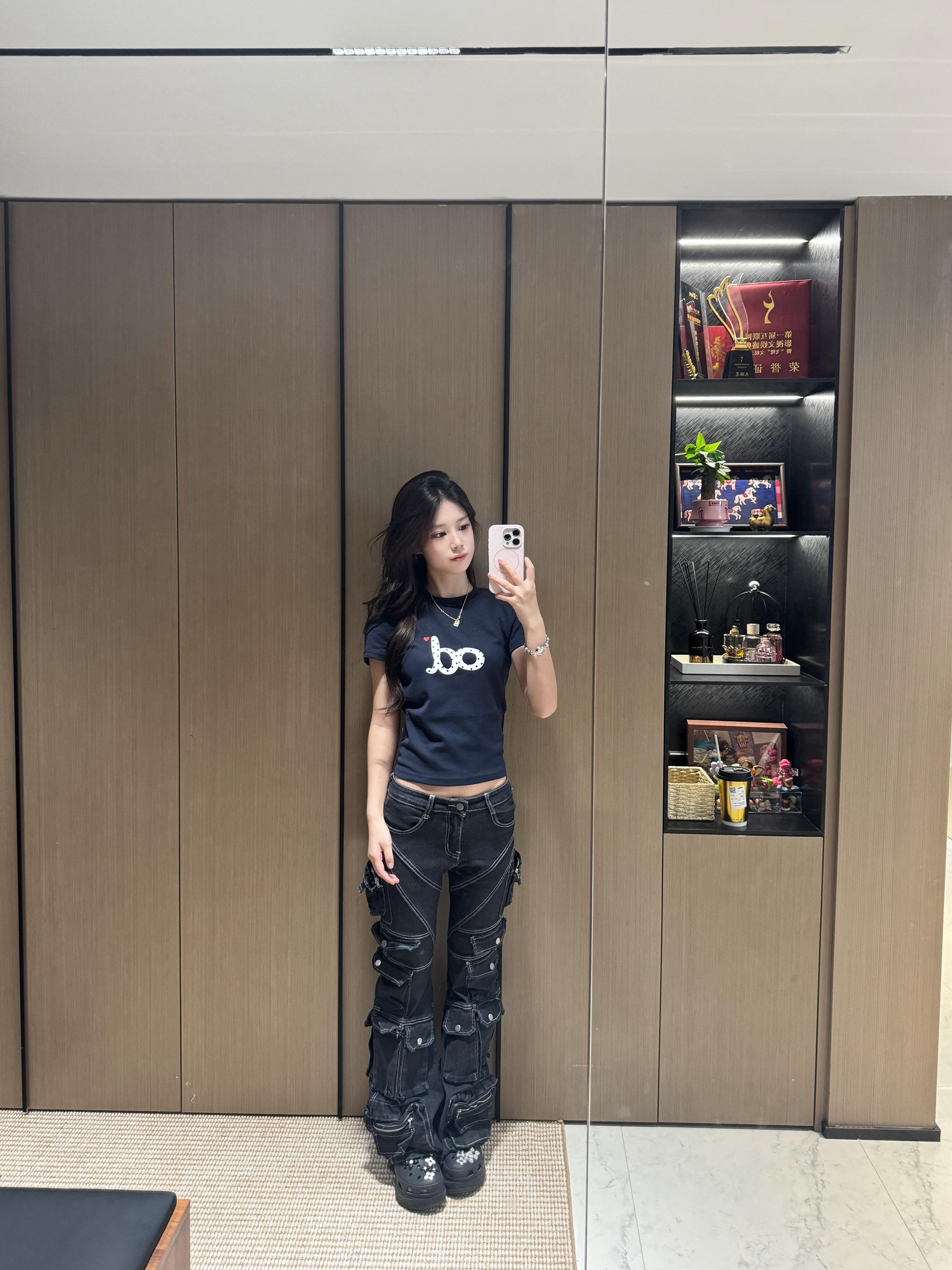 한 부서 ins 핫걸 몸매 가꾸기 쇼트 스타일 티셔츠 여성 작은 대중 알파벳 프린트 몸매 가꾸기 슬림해 보이는 반팔 맨위