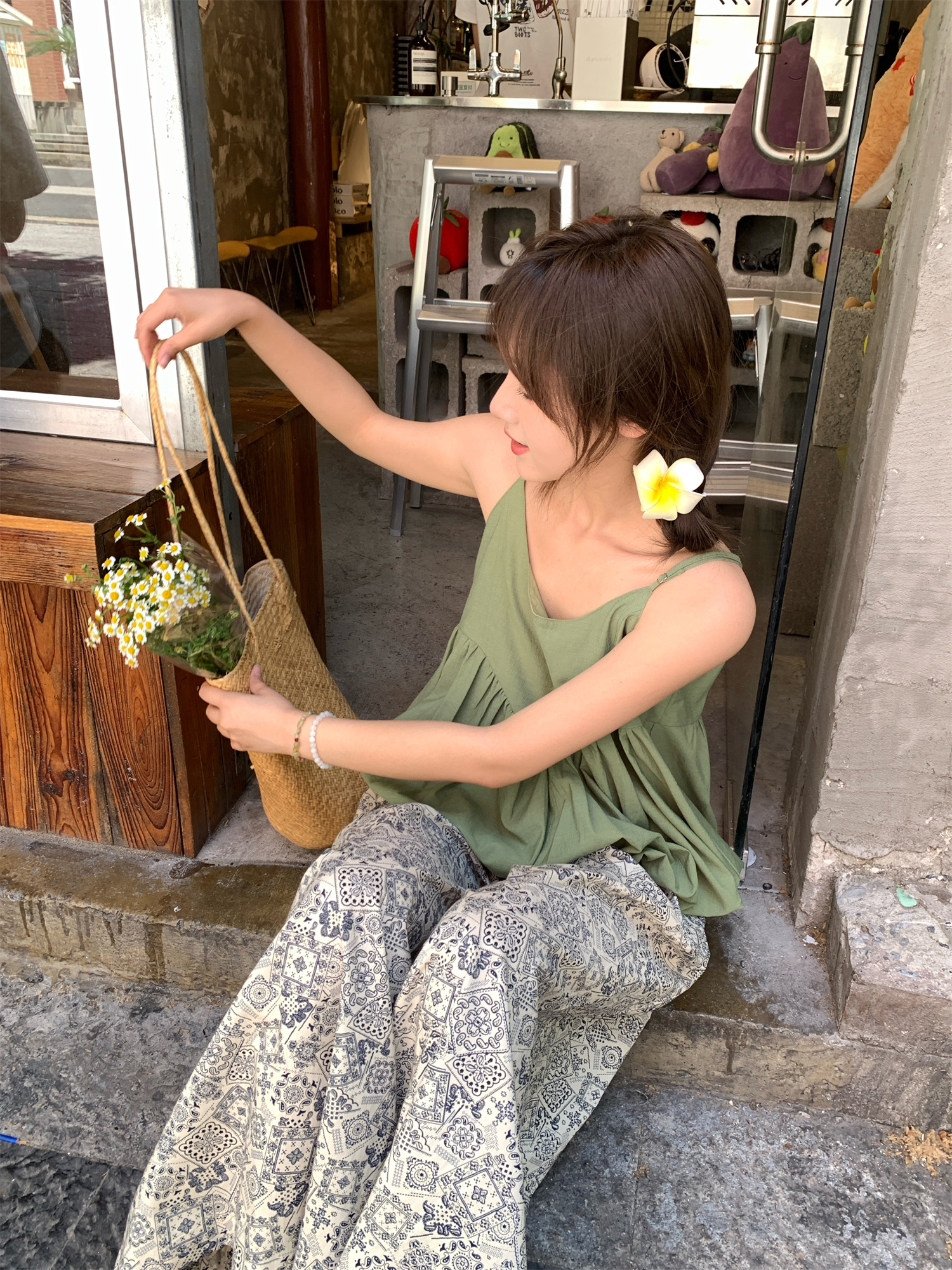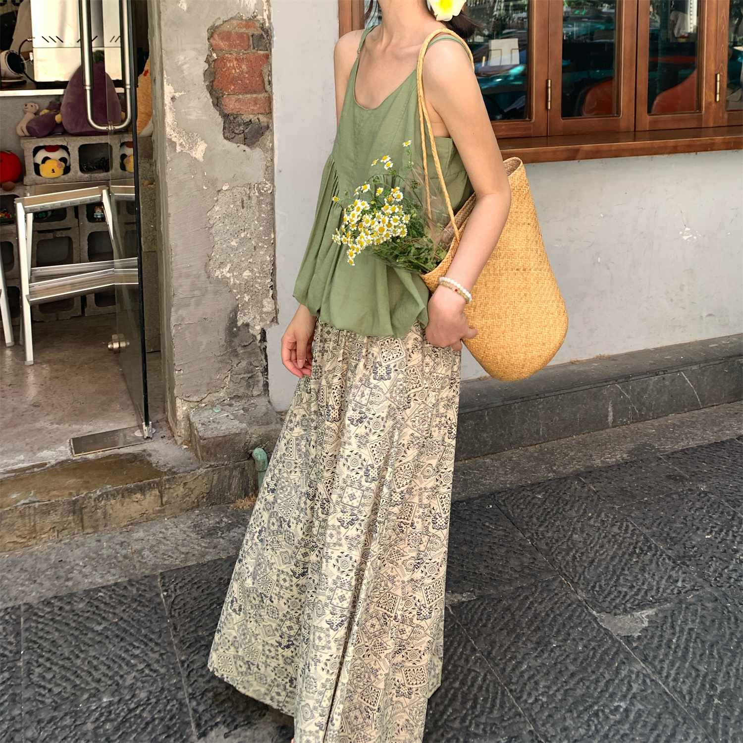 실사 정가 달콤함 출퇴근 캐미솔 작은 꽃무늬 9 포인트 무 바지