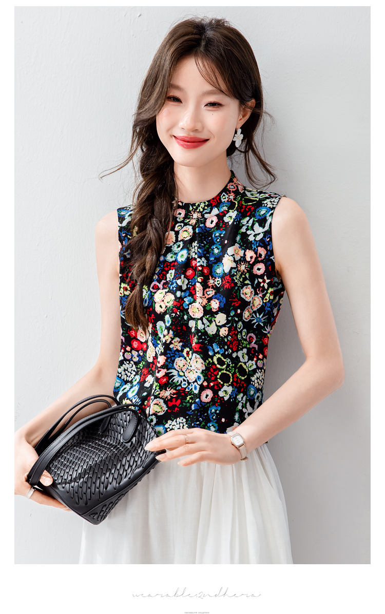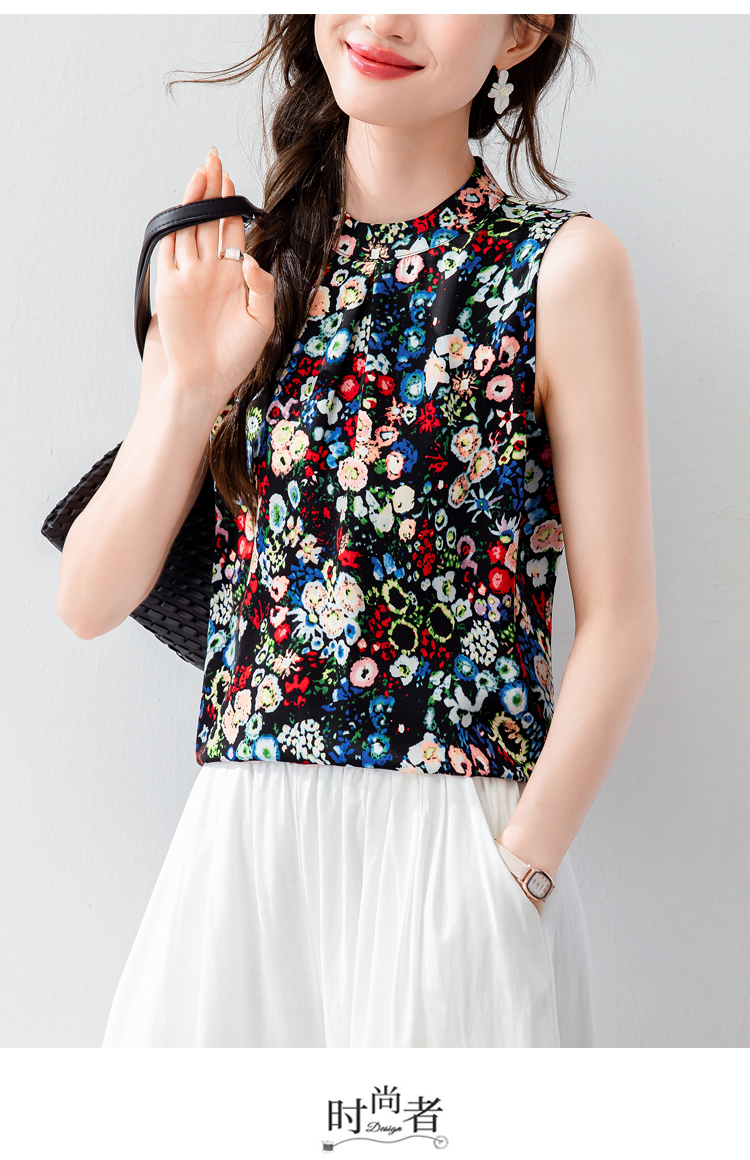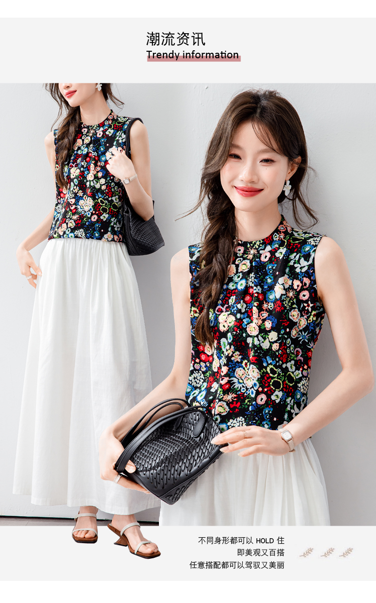 시폰 셔츠 여성 2026 여름 새로운 빅 사이즈 패션 다용도 슬림해 보이는 프린트 맨위 민소매 조끼 외국 가스 작은 셔츠