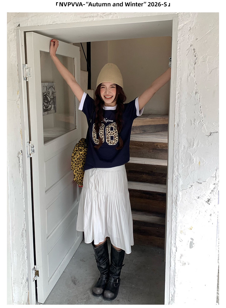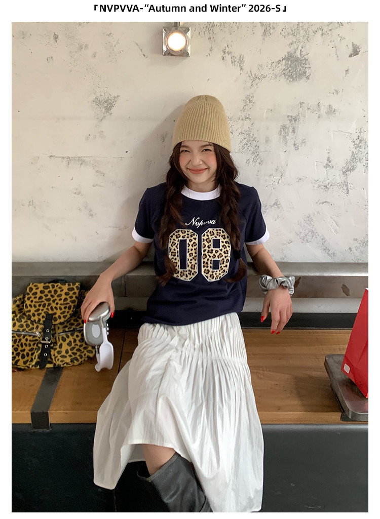 아메리칸 레트로 레오파드 무늬 프린트 반팔 티셔츠