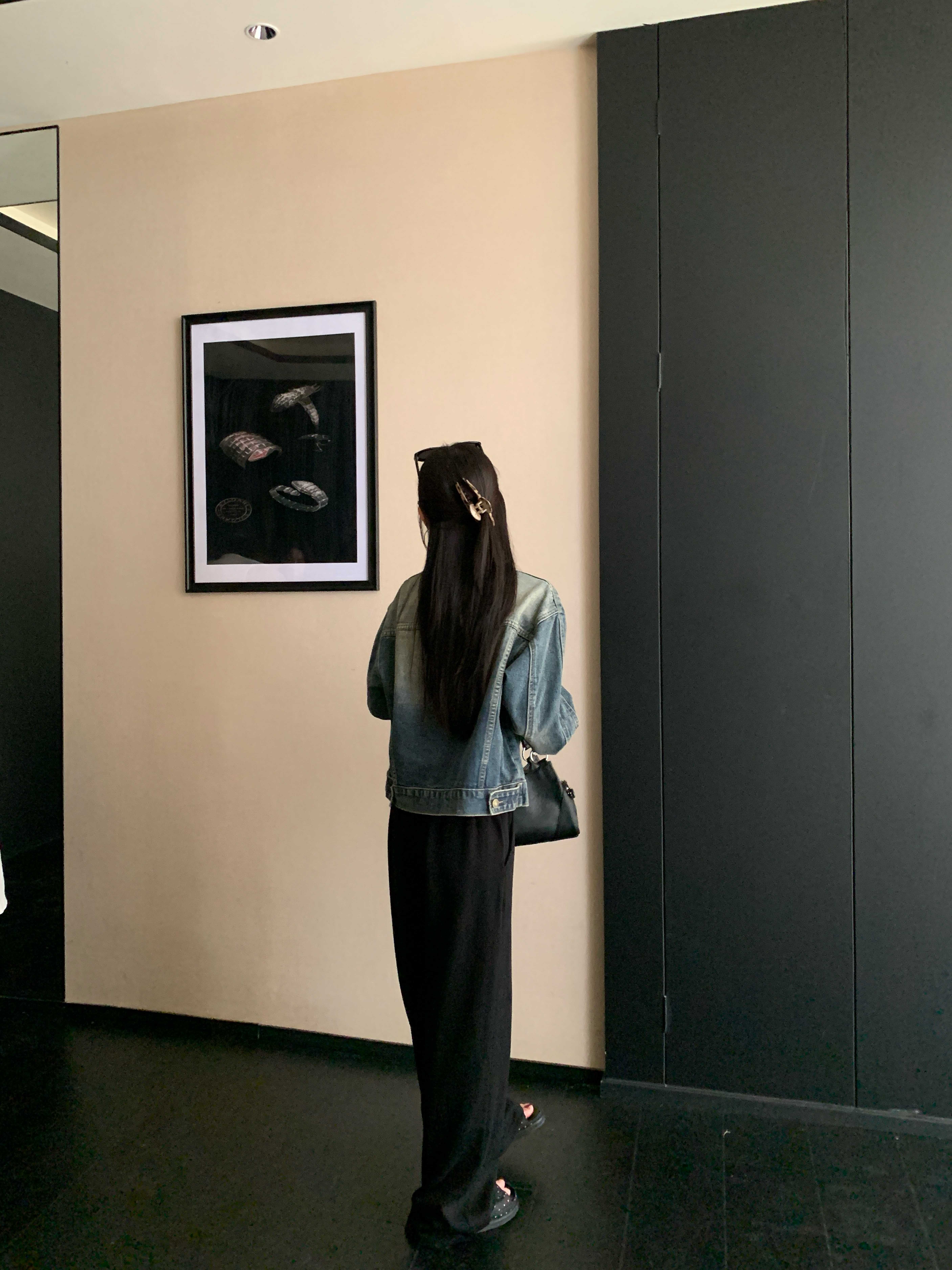 실사 한국 스타일 루즈핏 인터넷 유명인 단색 데님 여성 대 다용도 디자인 센스 베스트