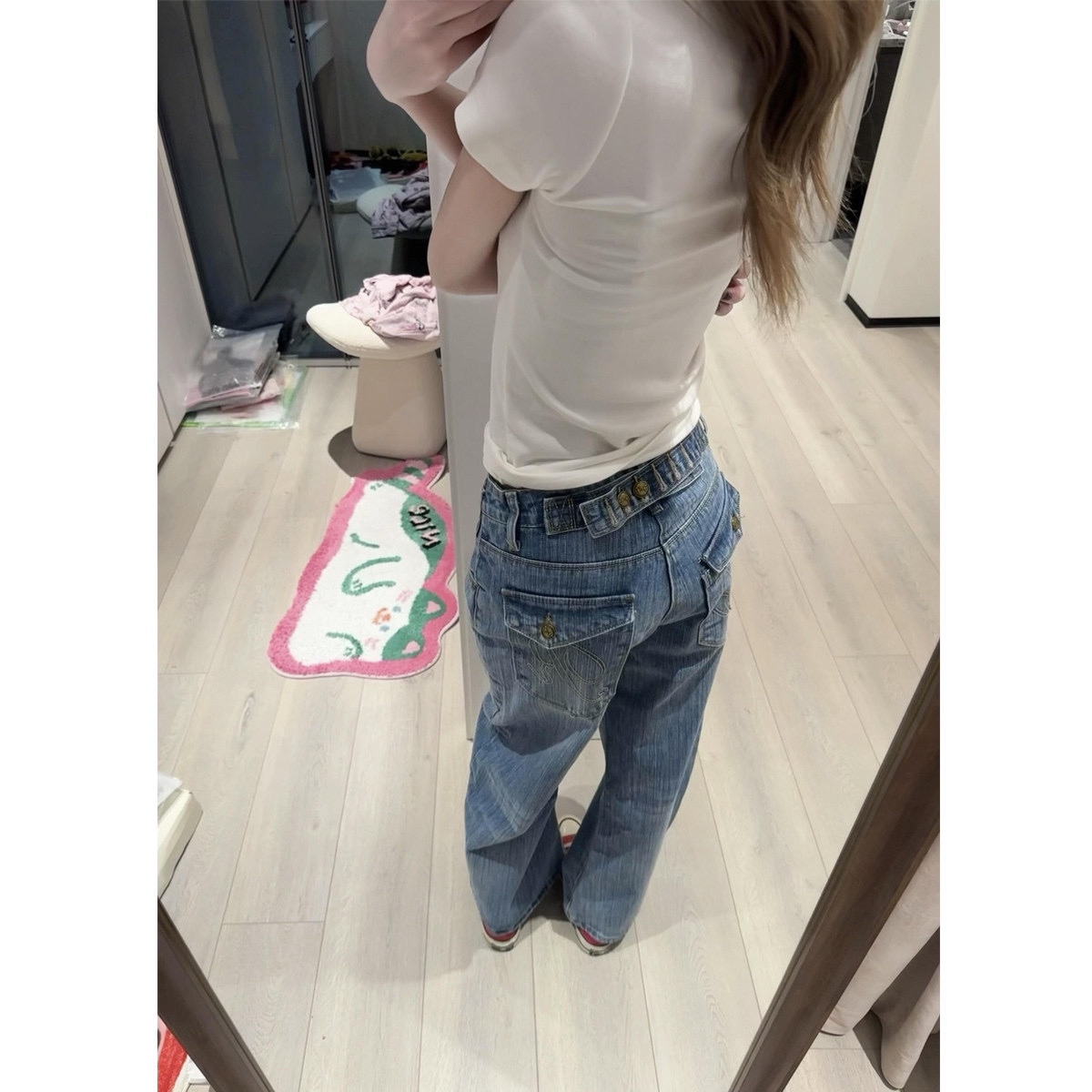 br 아메리칸 찢어진 부분 청바지 남녀 레트로 파괴 루즈핏 워싱 스트레이트 와이드 레그 팬츠 바닥 청소 긴 바지