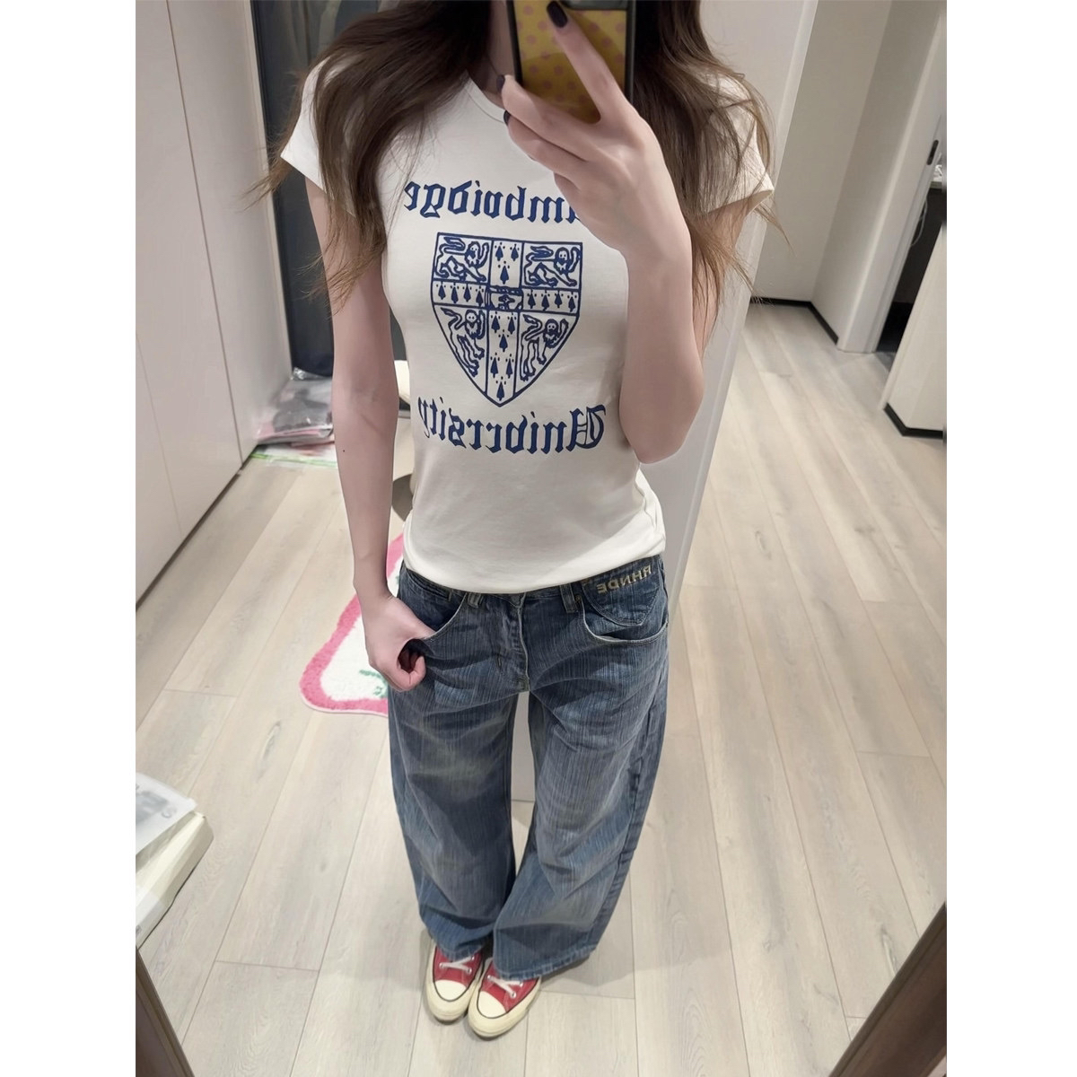 자수 프린트 네리 가게 천 19 지점 220 그램 순면 반팔 티셔츠