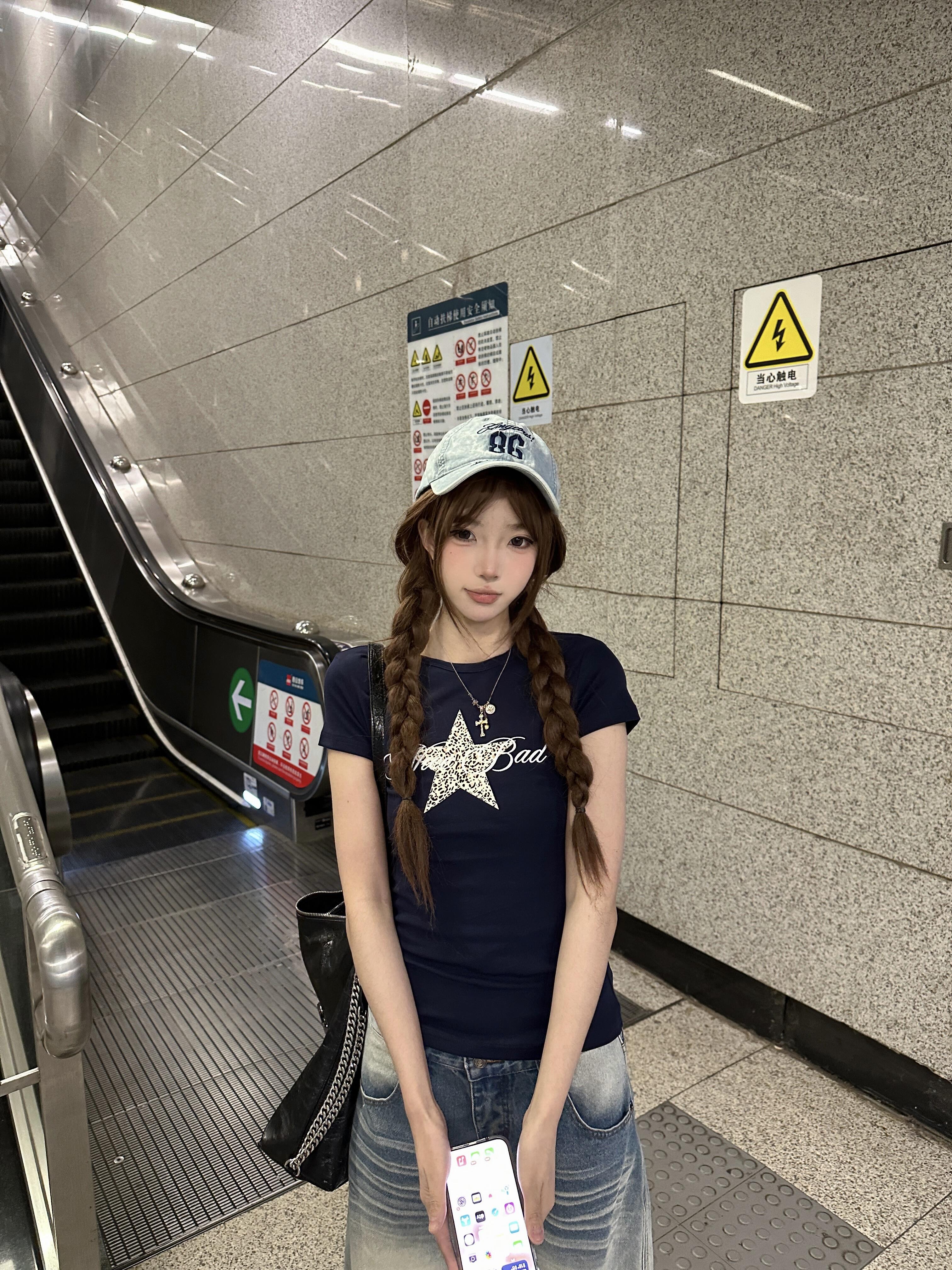 아메리칸 지 공지 소녀 알파벳 프린트 반팔 티셔츠 여성 여름 몸매 가꾸기 슬림해 보이는 쇼트 스타일 맨위 트렌디