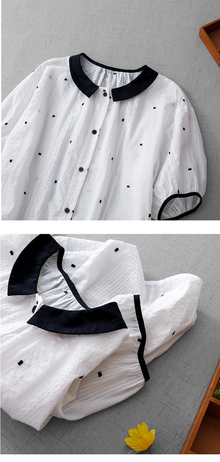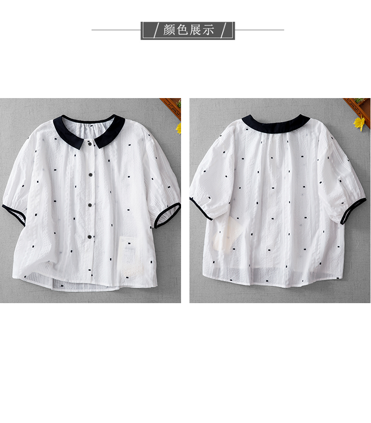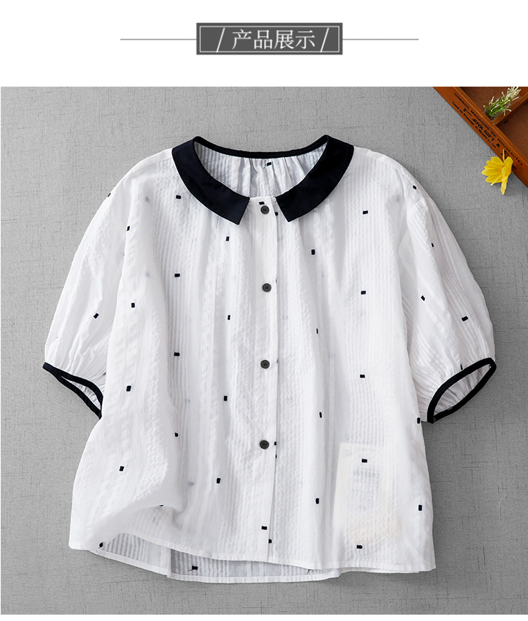 고급 센스 화이트 포인트 여성 셔츠 2026 새로운 루즈핏 연령 감소 외국 가스 작은 셔츠 5 점 소매 맨위