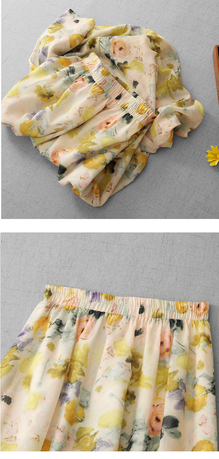 3927 실사 문예 좋은 제직 면 꽃무늬 신제품 테두리 작은 주머니 7부 소매 루즈핏 여름 전원 바람 롱 스커트