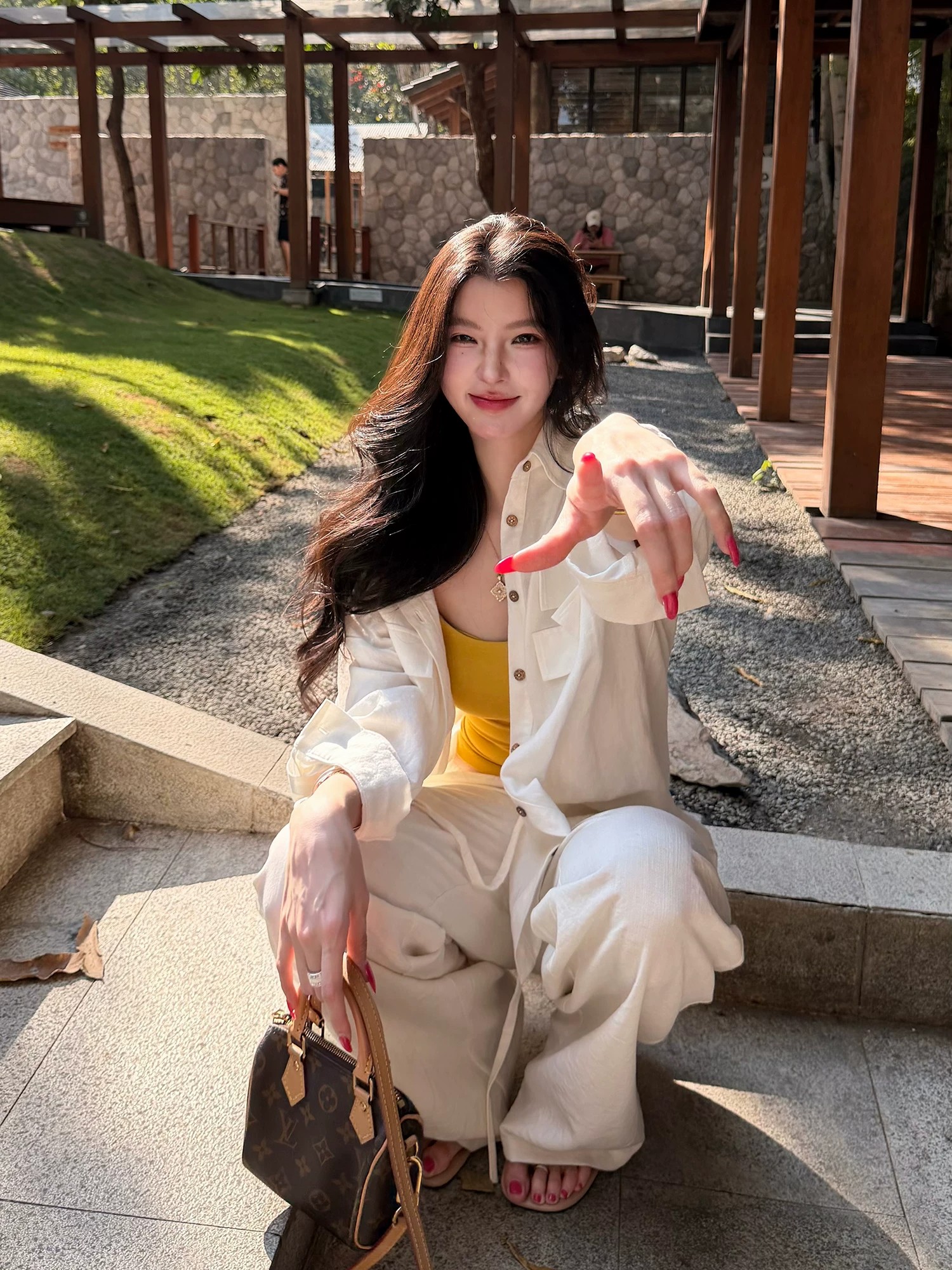 원본 원단 V넥 행침 목 둘 착용 민소매 루즈핏 화이트 캐미솔 여름 외출용 아름다운 백리스 맨위