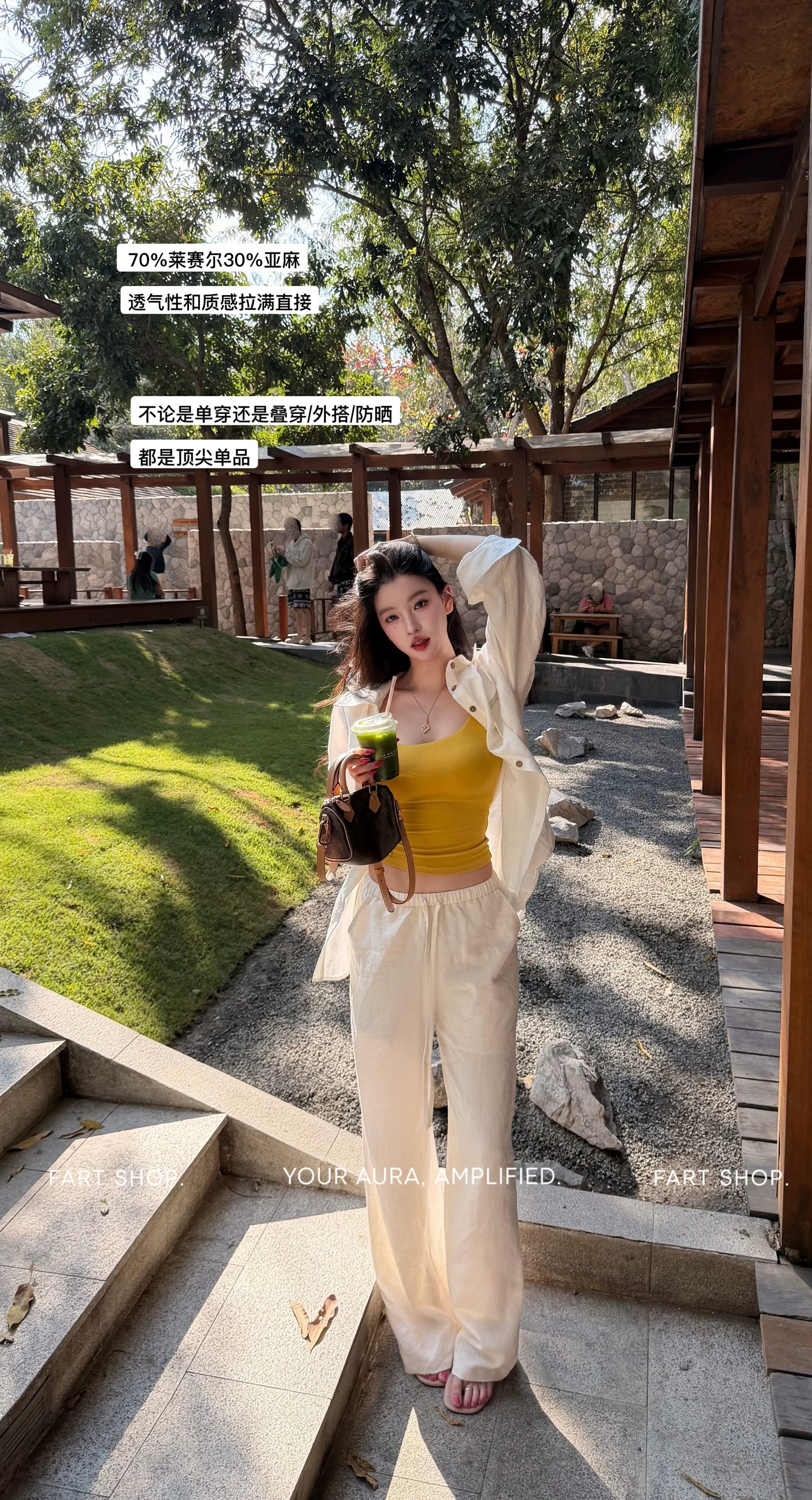 원본 가공 아마 루즈핏 화이트 여성 셔츠 봄 여름 느슨함 맨위