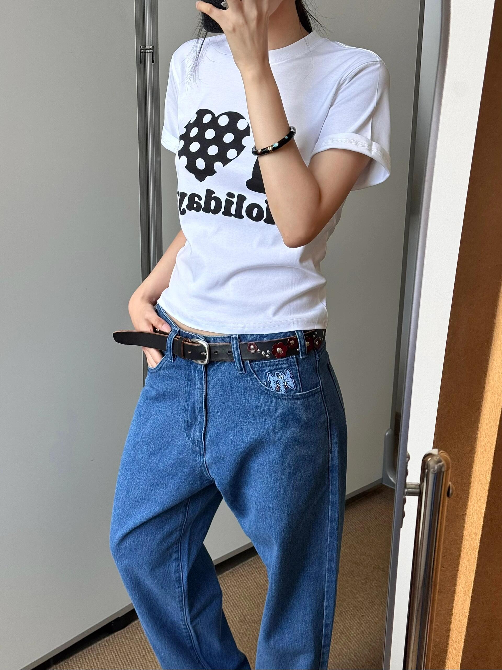 2026 여름 새로운 od 도트 무늬 하트 몸매 가꾸기 라운드 넥 쇼트 스타일 여성용 짧은 소매 아메리칸 tee