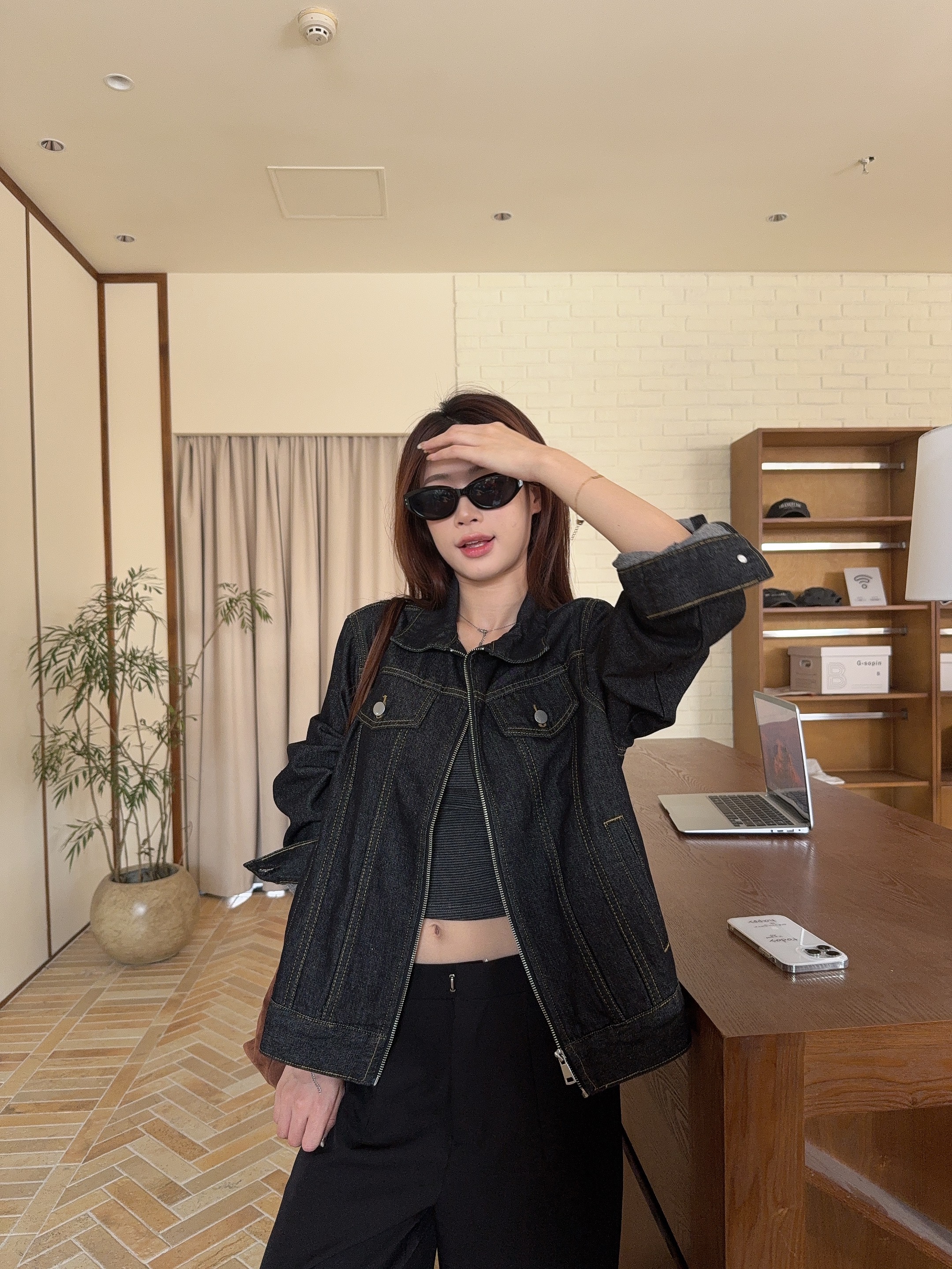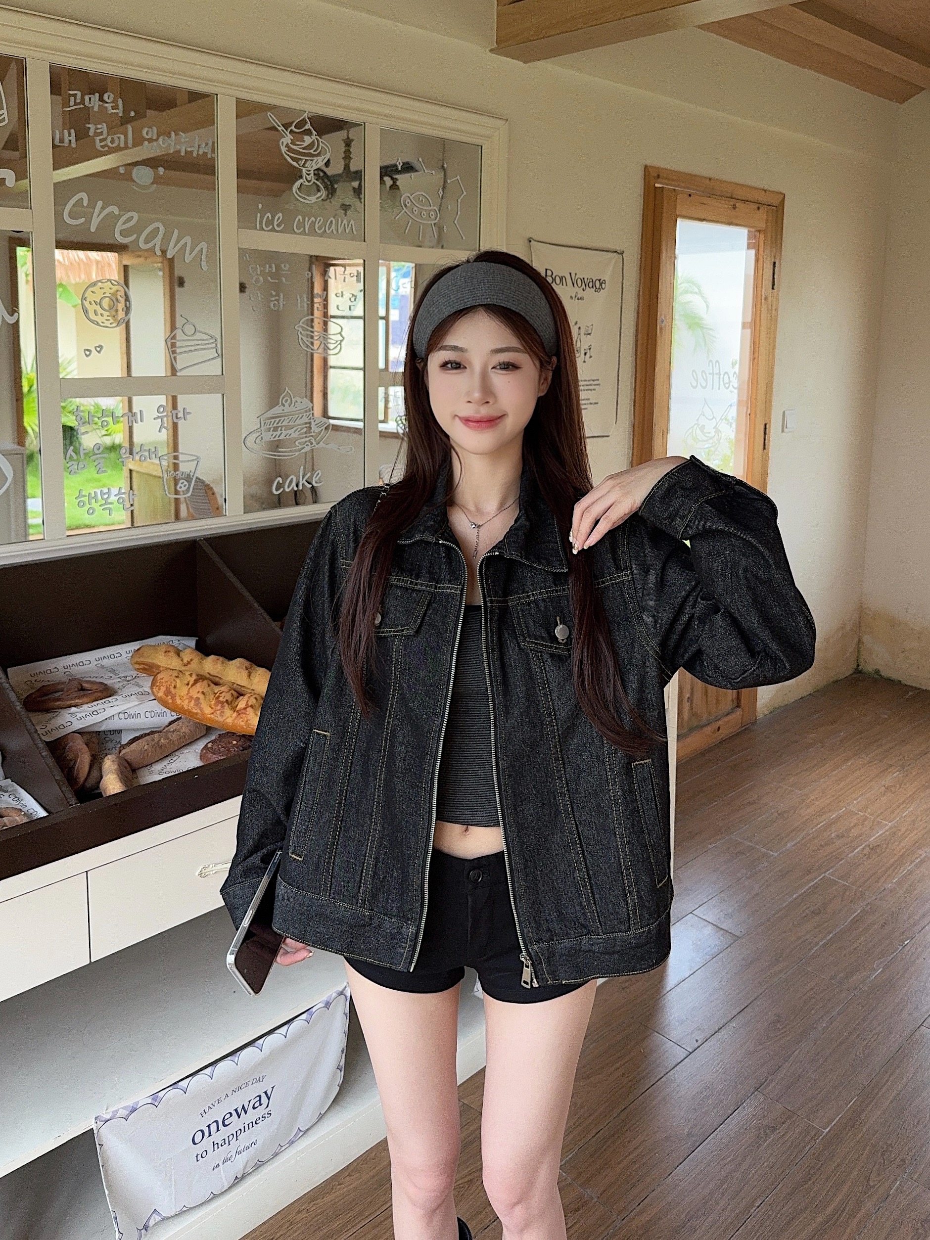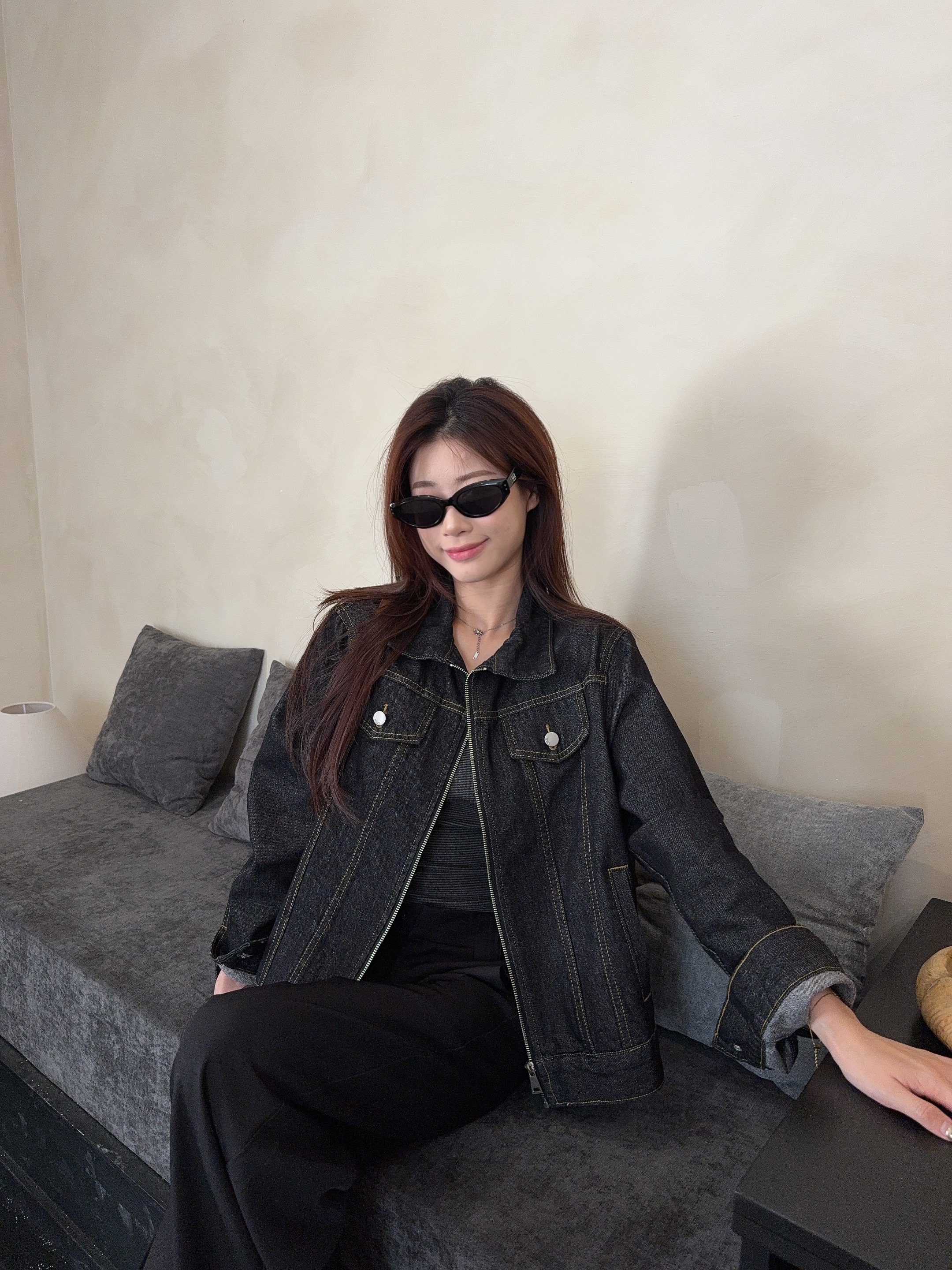 아메리칸 레트로 해체 질감 데님 재킷 루즈핏 프로필 모양 몸매 가꾸기 슬림해 보이는 워크웨어 재킷 여성