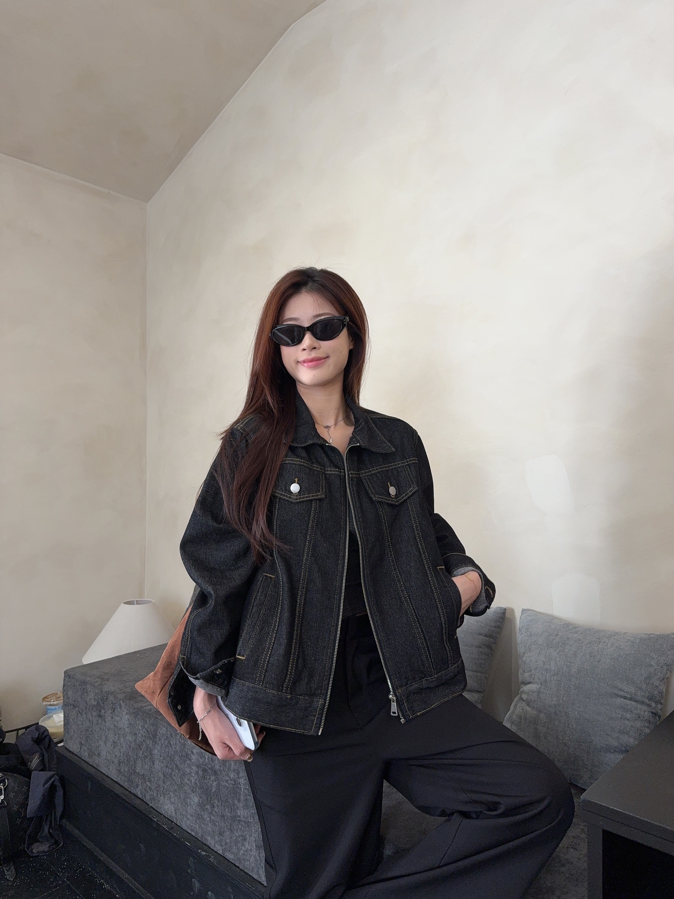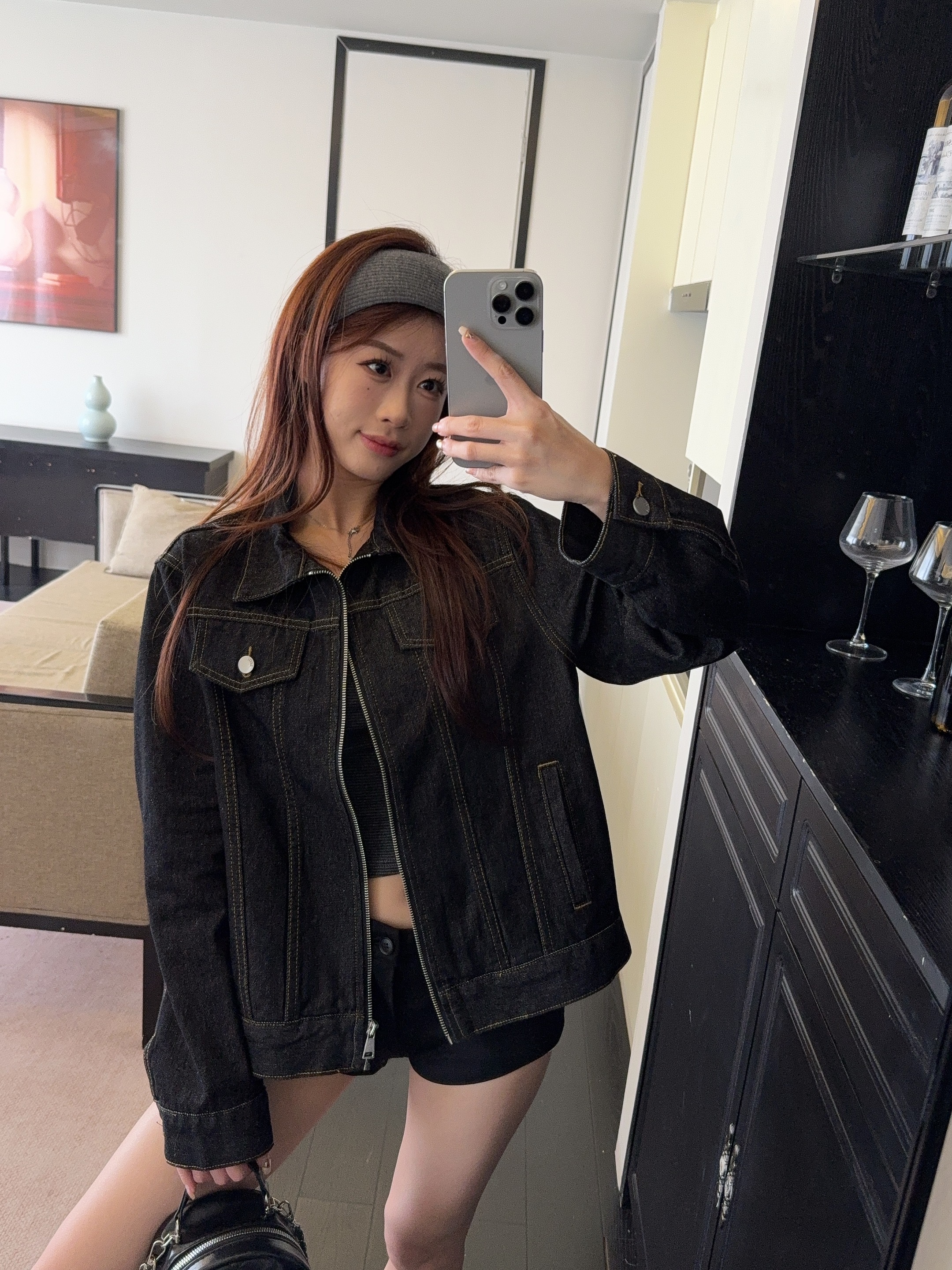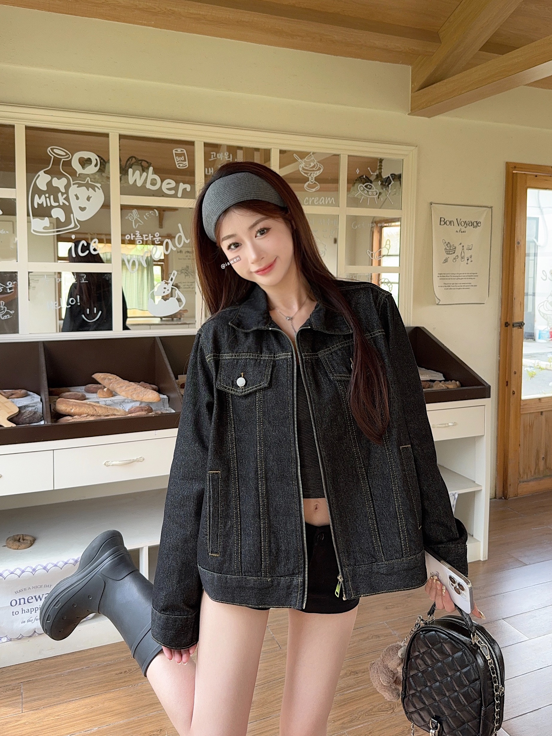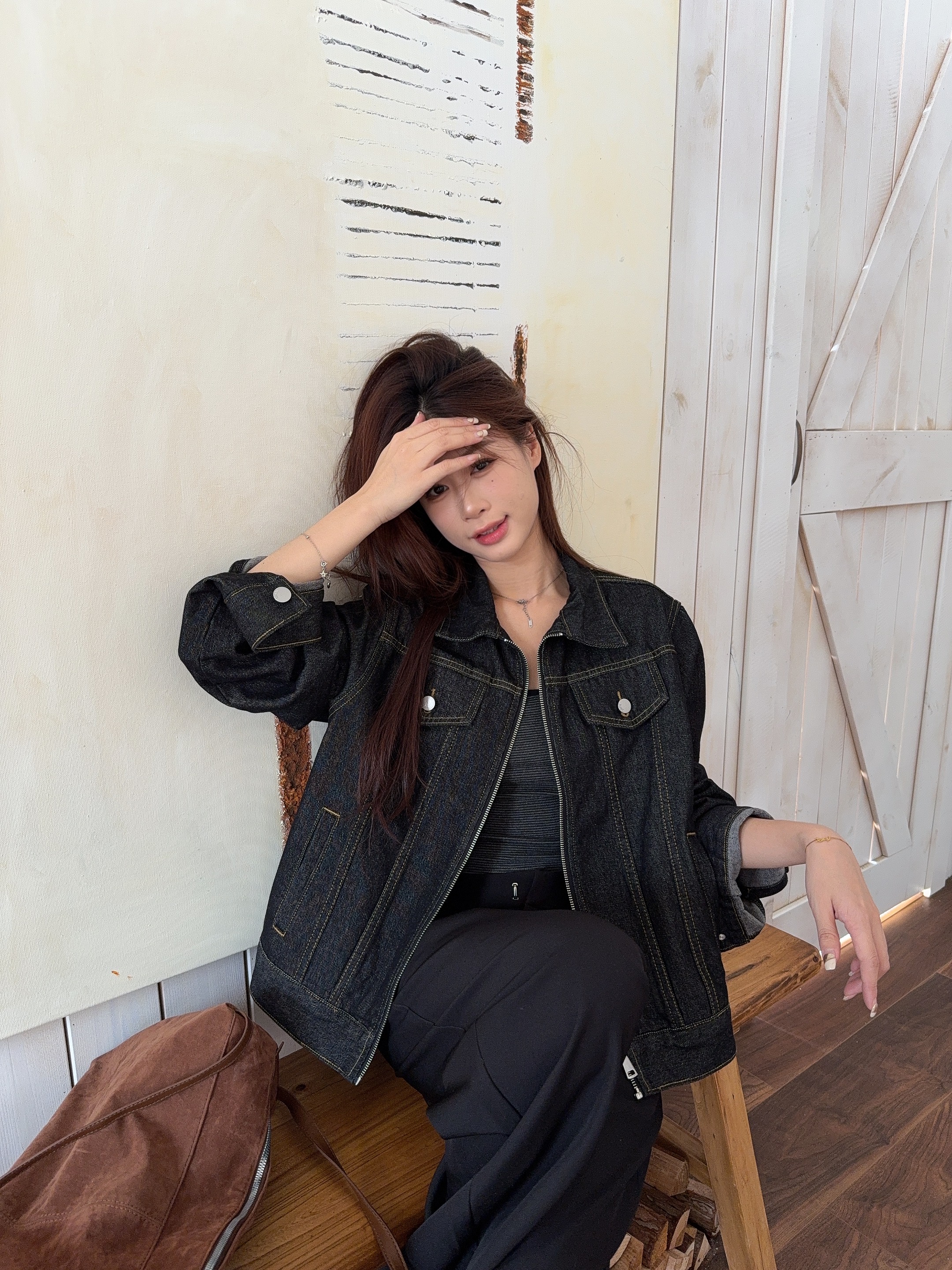 실사 한국 chic 봄 항구 바람 주머니 지퍼 워싱 데님 다용도 재킷