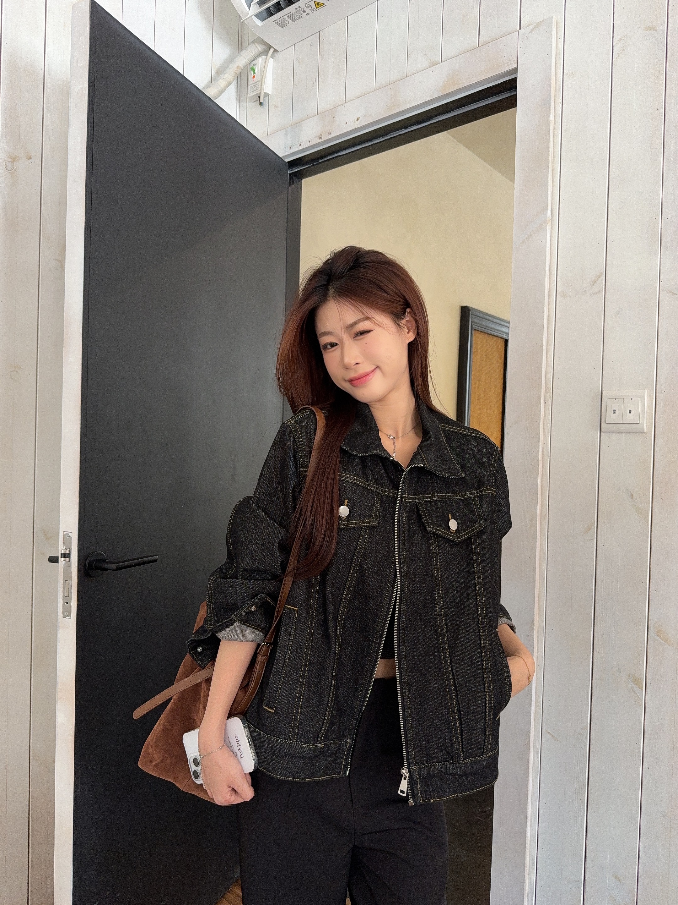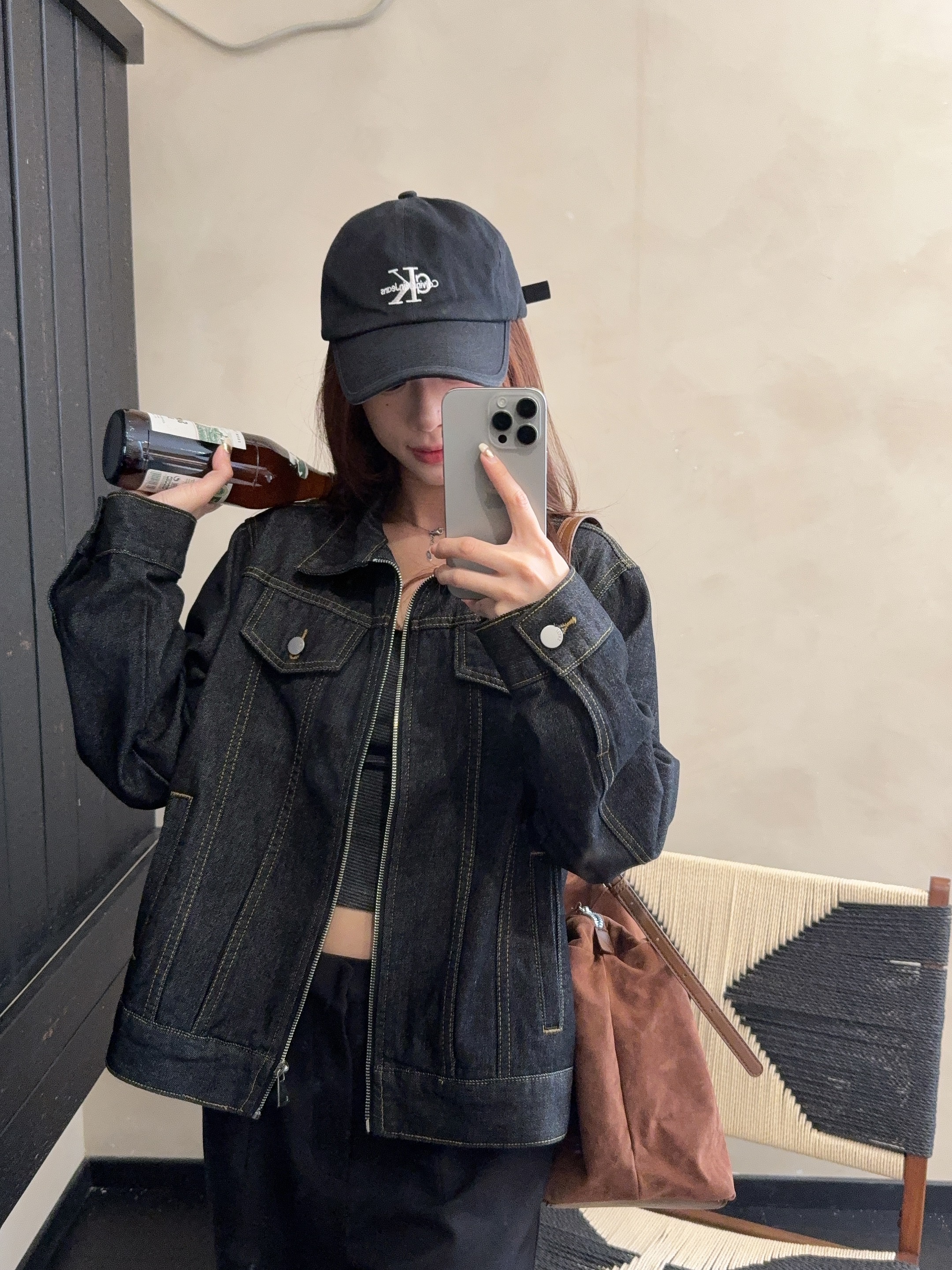 실사 레트로 아메리칸 지퍼 노스탤지어 루즈핏 데님 재킷