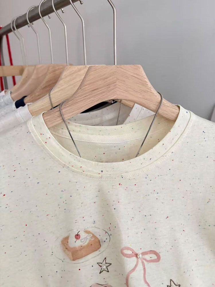 여름 새로운 한 부서 라운드 넥 도트 무늬 패션 긍정적 인 어깨 프린트 섹션 반팔 티셔츠