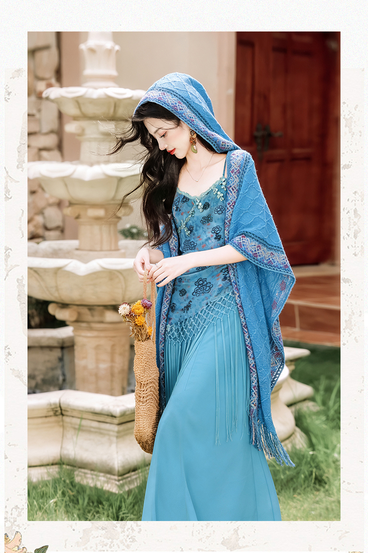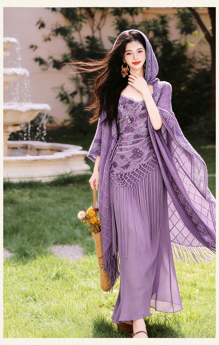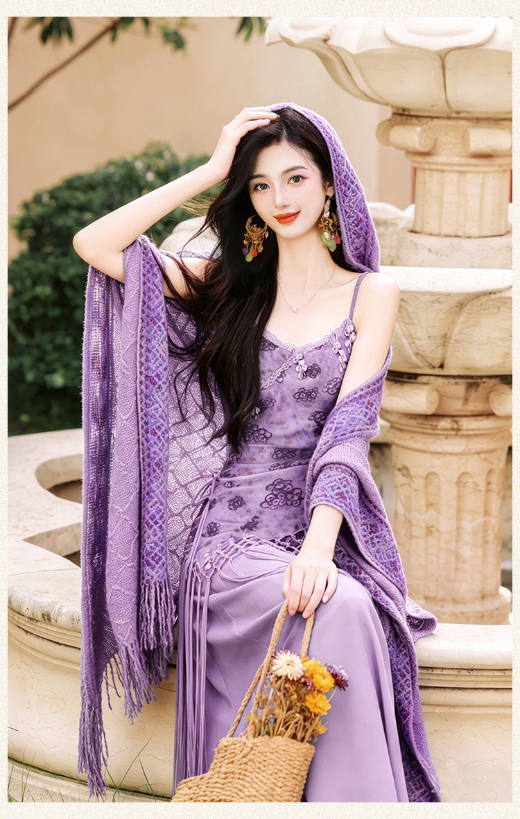 언어 그리스어 진짜 사진 찍기 새로운 휴가 바람 슬립 드레스 코디 숄 두 조각 세트 드레스