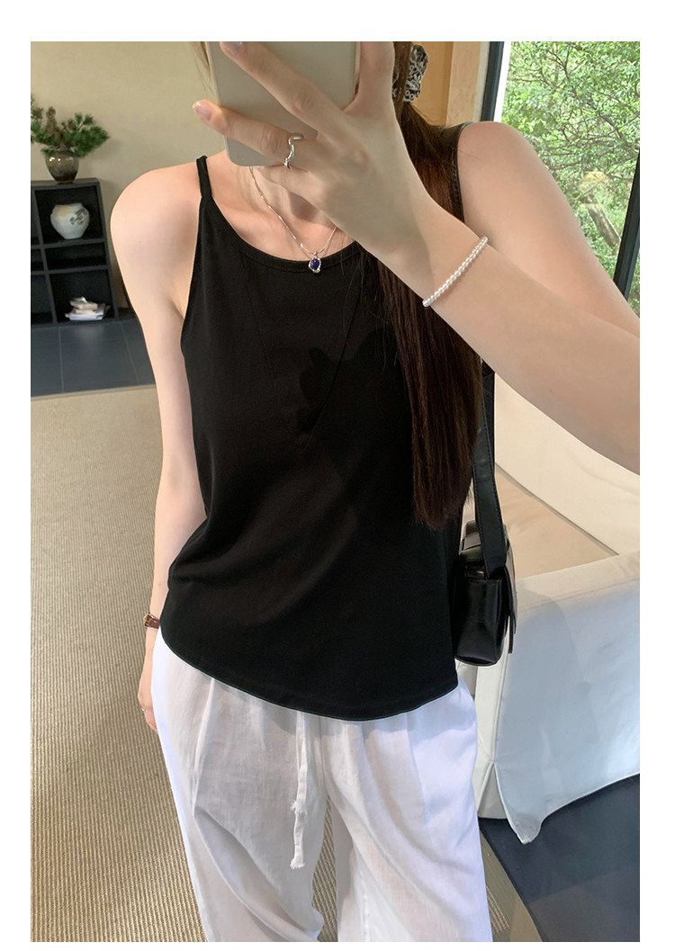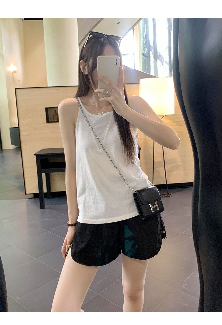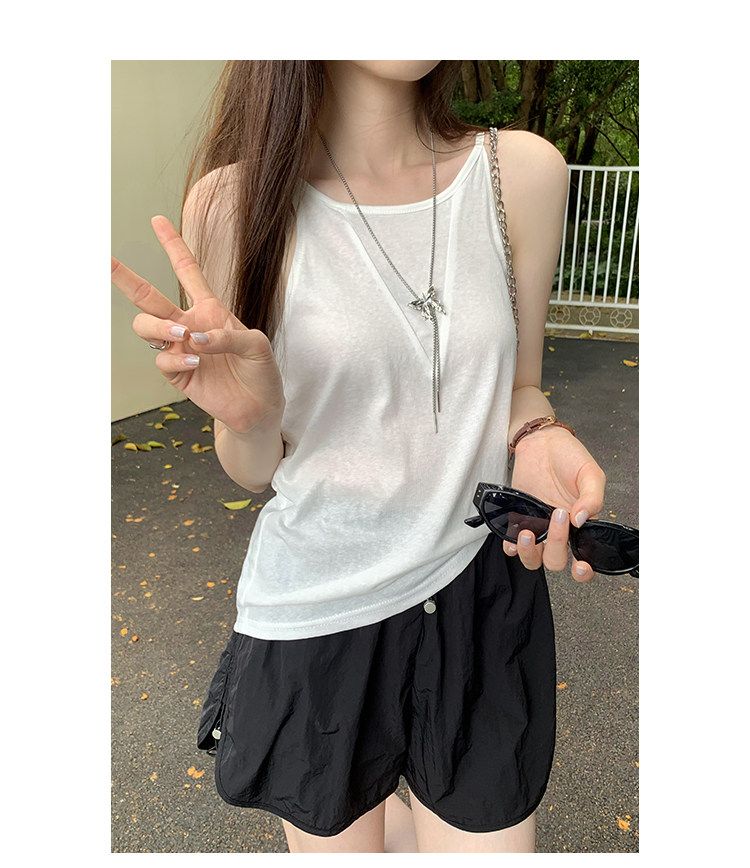 원본 원단 V넥 행침 목 둘 착용 민소매 루즈핏 화이트 캐미솔 여름 외출용 아름다운 백리스 맨위