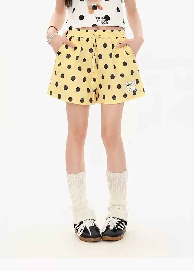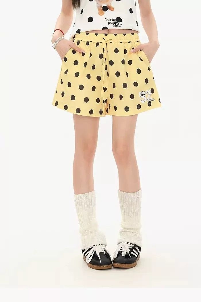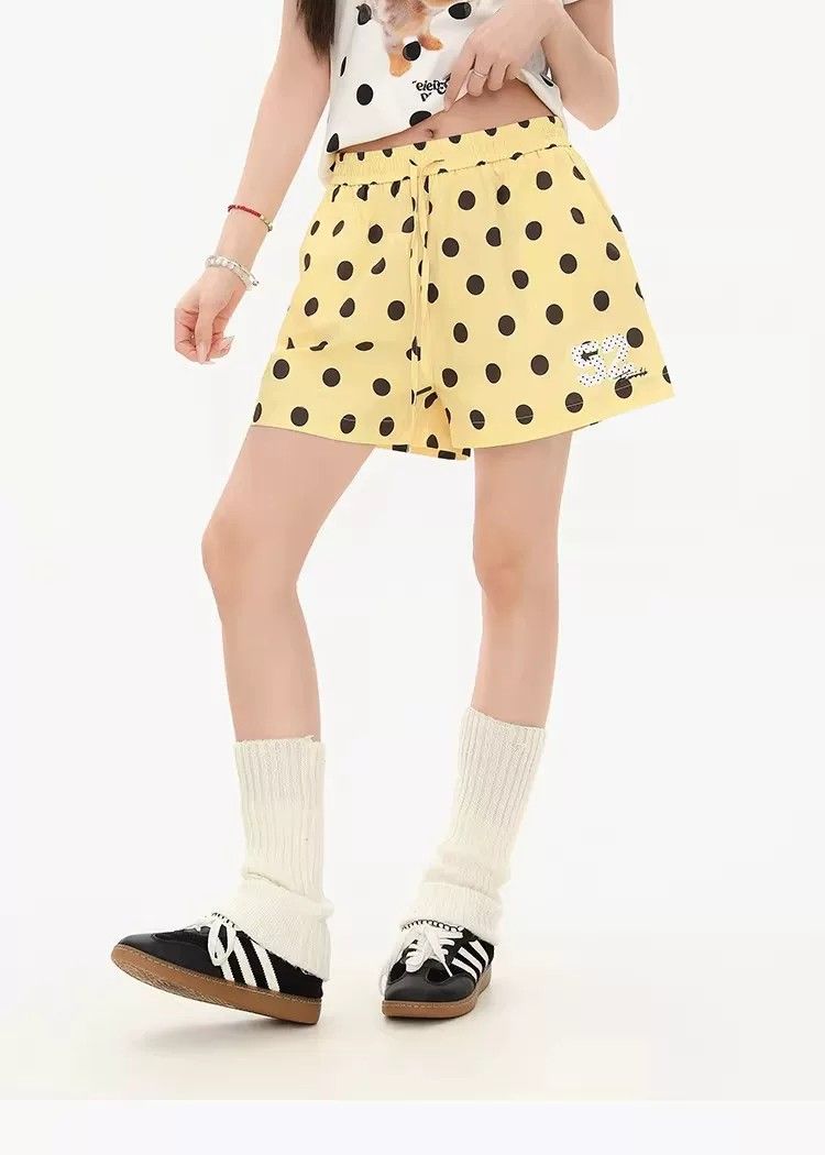 3 차원 허리 머리 황색 도트 무늬 반바지 여성 여름 느긋한 바람 루즈핏 캐주얼 바지 다용도 펌프 로프 넓은 다리 핫 바지