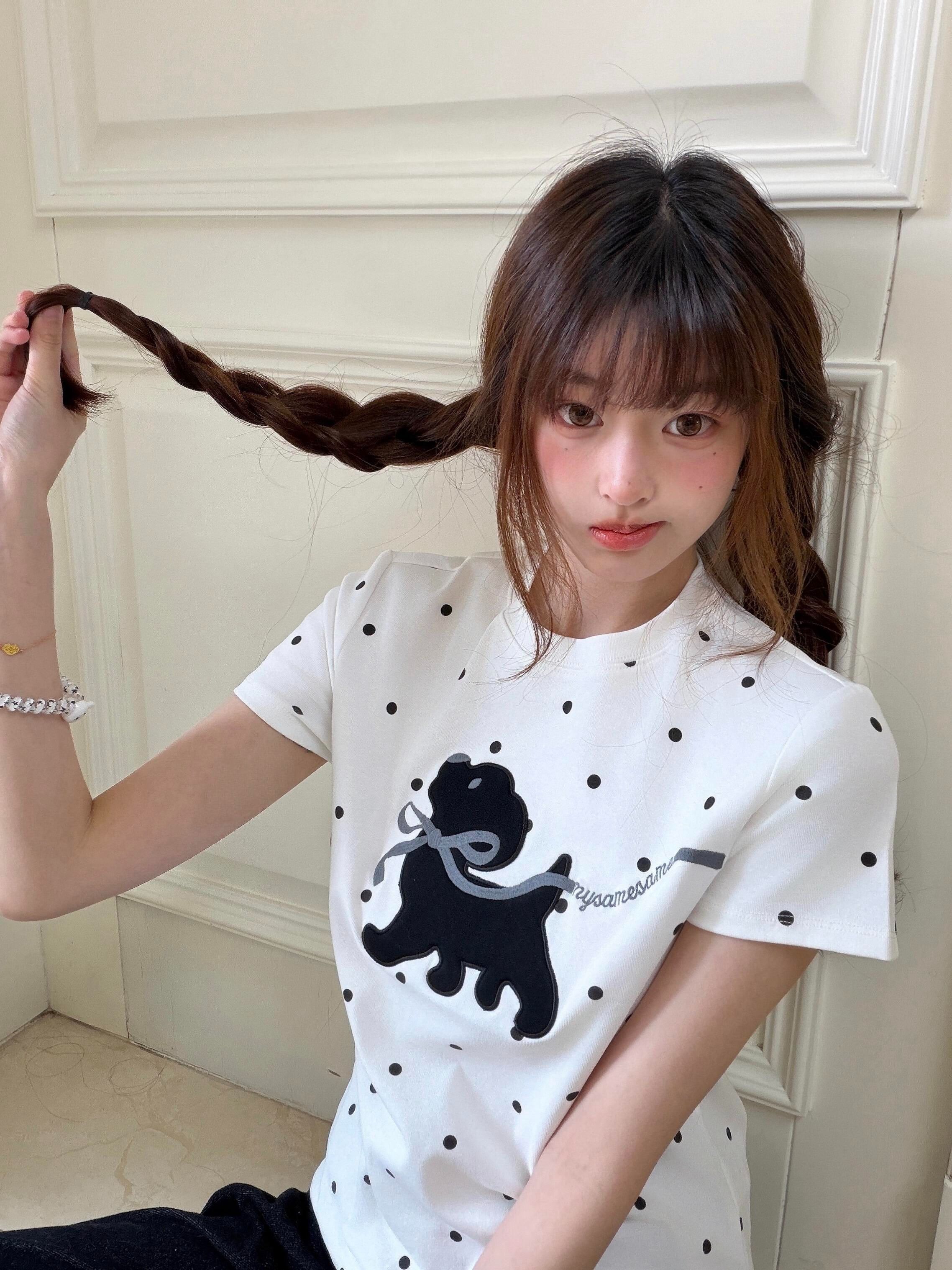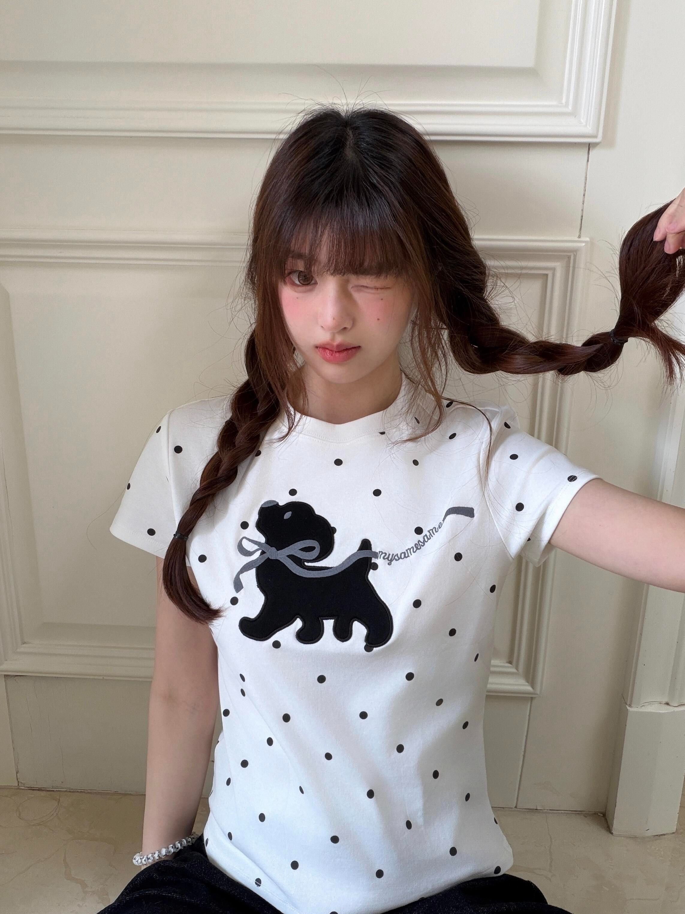220 그램 40 빗질하다 92 면 8 암모니아 Lun 이후 패키지 칼라 몸매 가꾸기 슬림해 보이는 긍정적 인 어깨 반팔 티셔츠 여성 여름 도트 무늬
