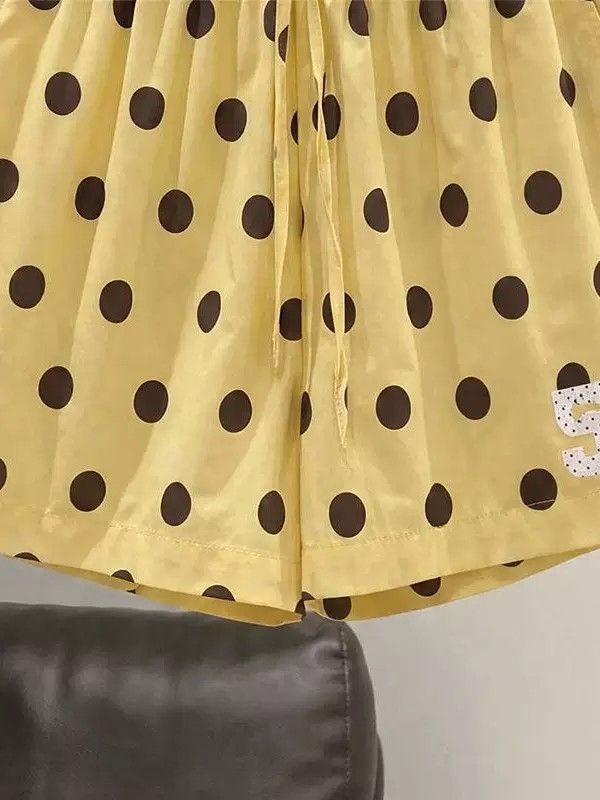 3 차원 허리 머리 황색 도트 무늬 반바지 여성 여름 느긋한 바람 루즈핏 캐주얼 바지 다용도 펌프 로프 넓은 다리 핫 바지