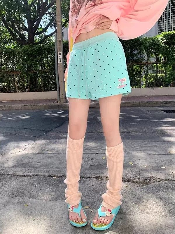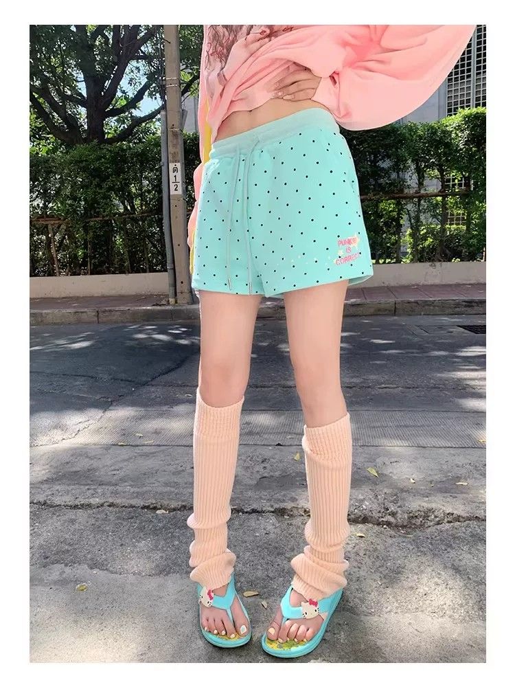3 차원 허리 머리 도트 무늬 알파벳 반바지 여성 여름 새로운 핫걸 루즈핏 다용도 펌프 로프 허리밴드 반바지