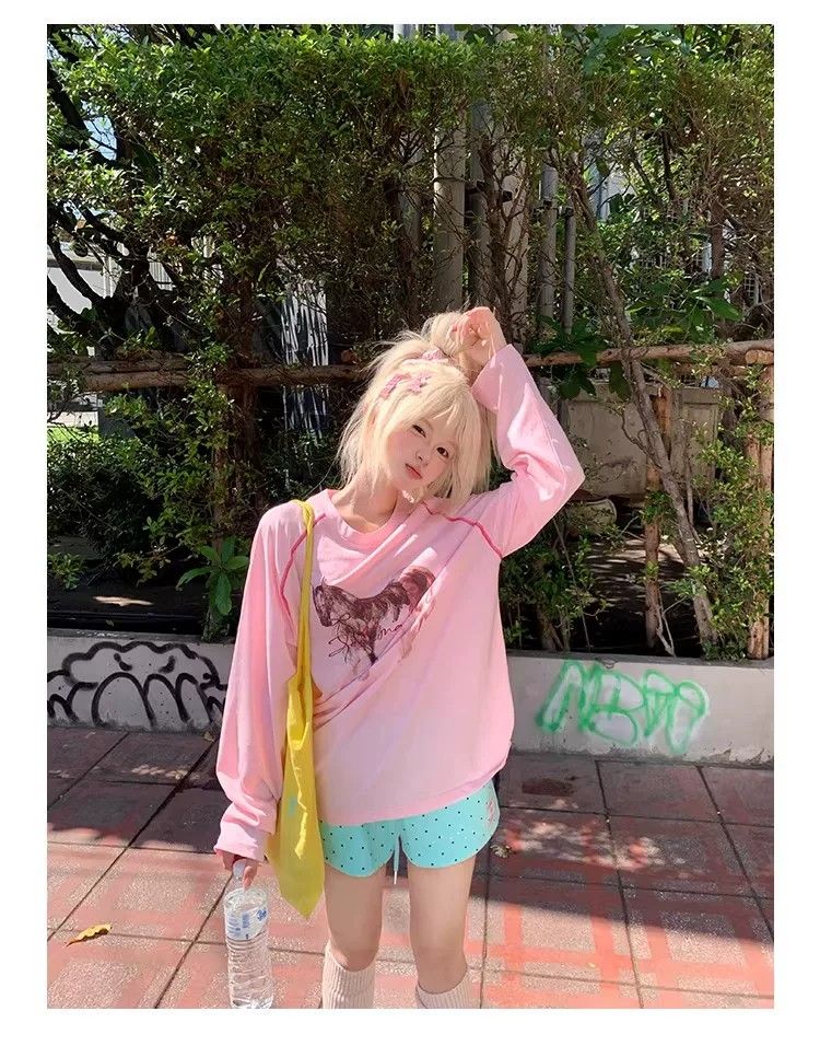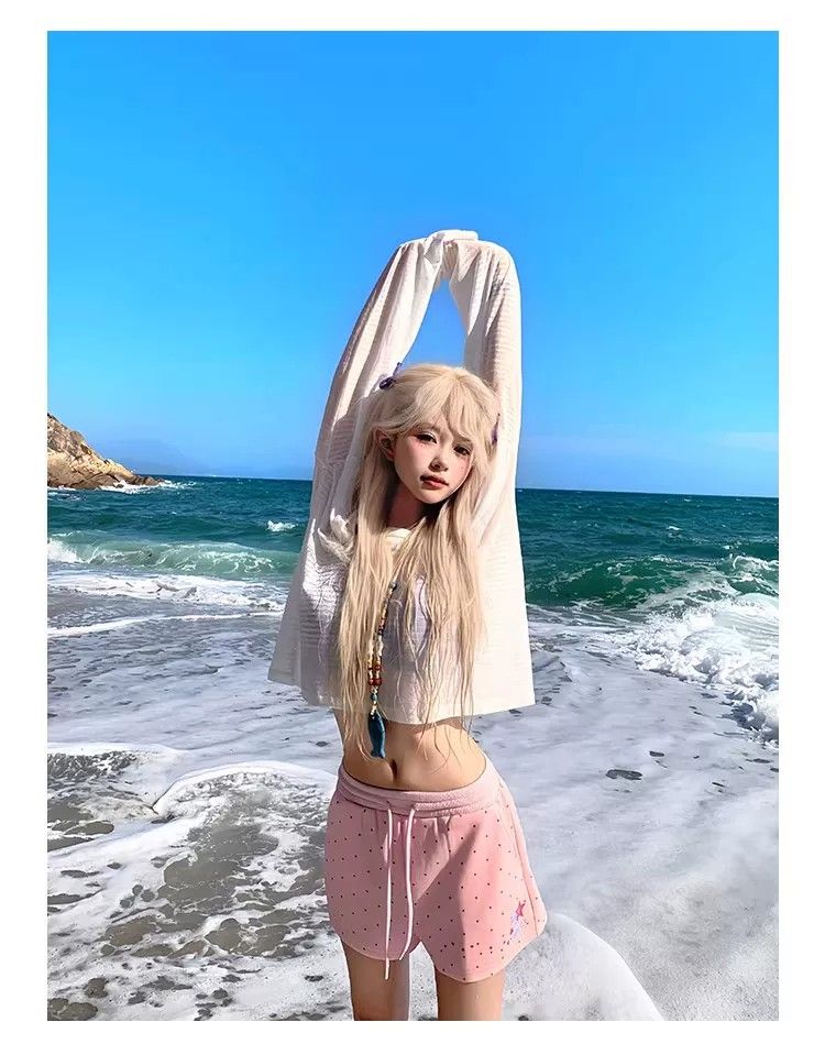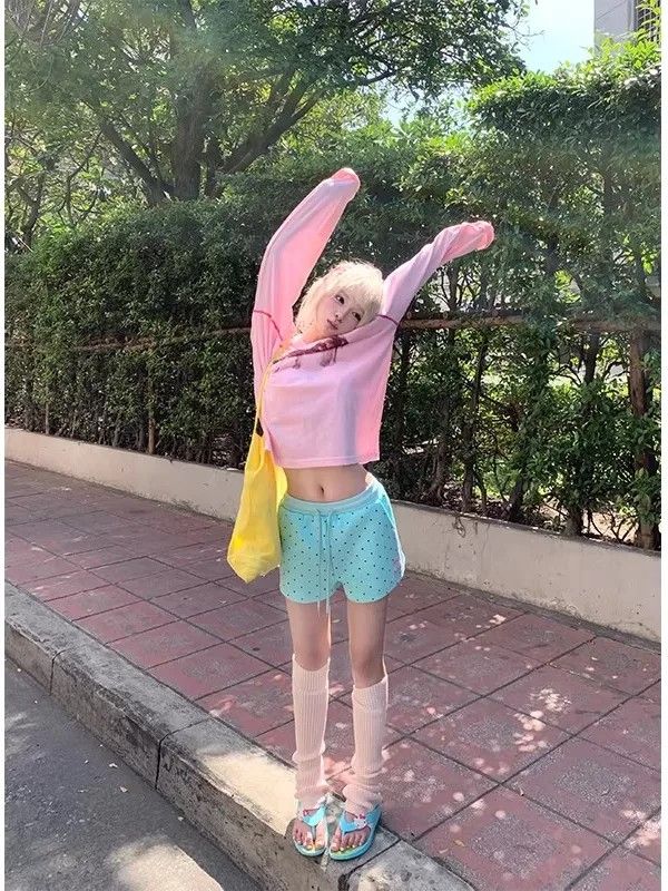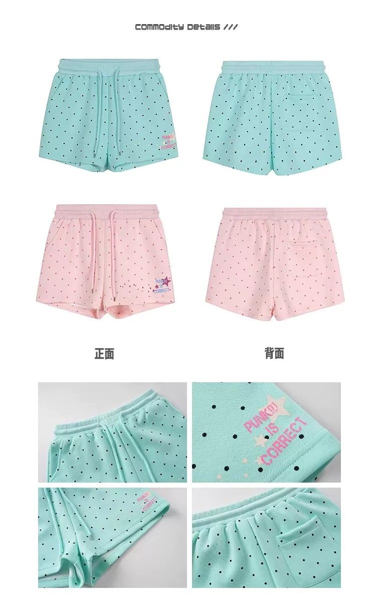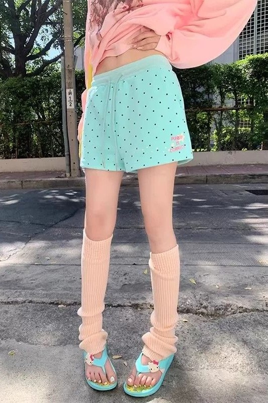 3 차원 허리 머리 조수 브랜드 도트 무늬 프린트 펌프 로프 3 점 바지 여성 2026 여름 핫걸 도파민 스트레이트 반바지