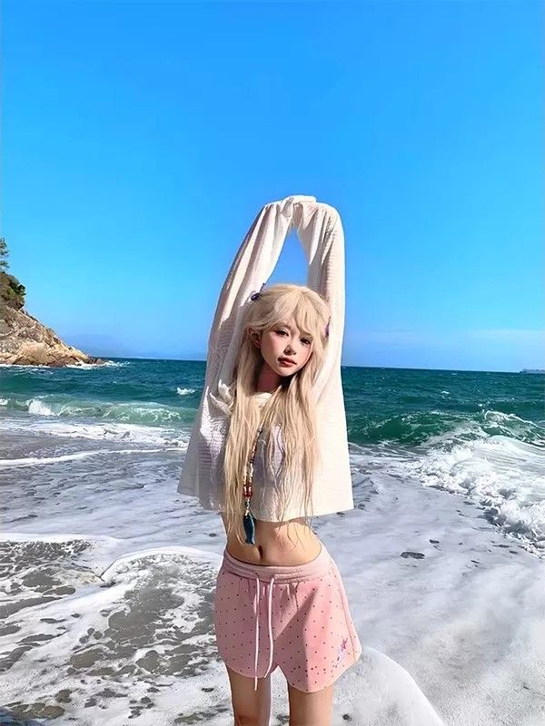 3 차원 허리 머리 블루 색상 레이스 밑단 미니멀리즘 2026 여름 새로운 달콤함 작은 대중 디자인 센스 운동 바지