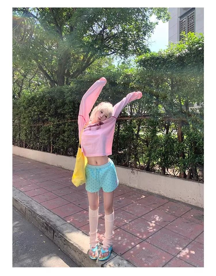 3 차원 허리 머리 한 부서 작은 대중 디자인 센스 도트 무늬 프린트 펌프 로프 허리밴드 3 점 바지 핫걸 여름 반바지