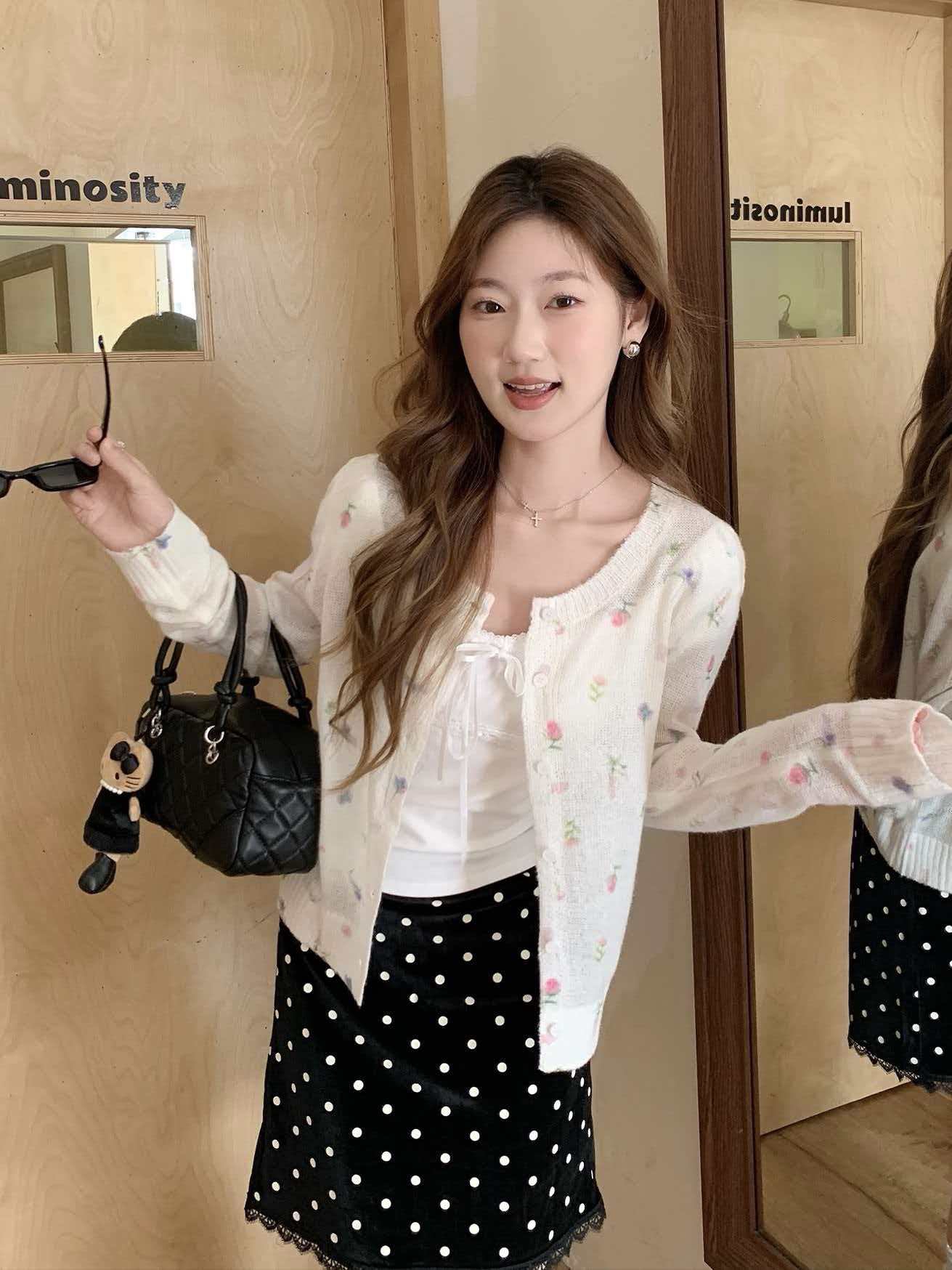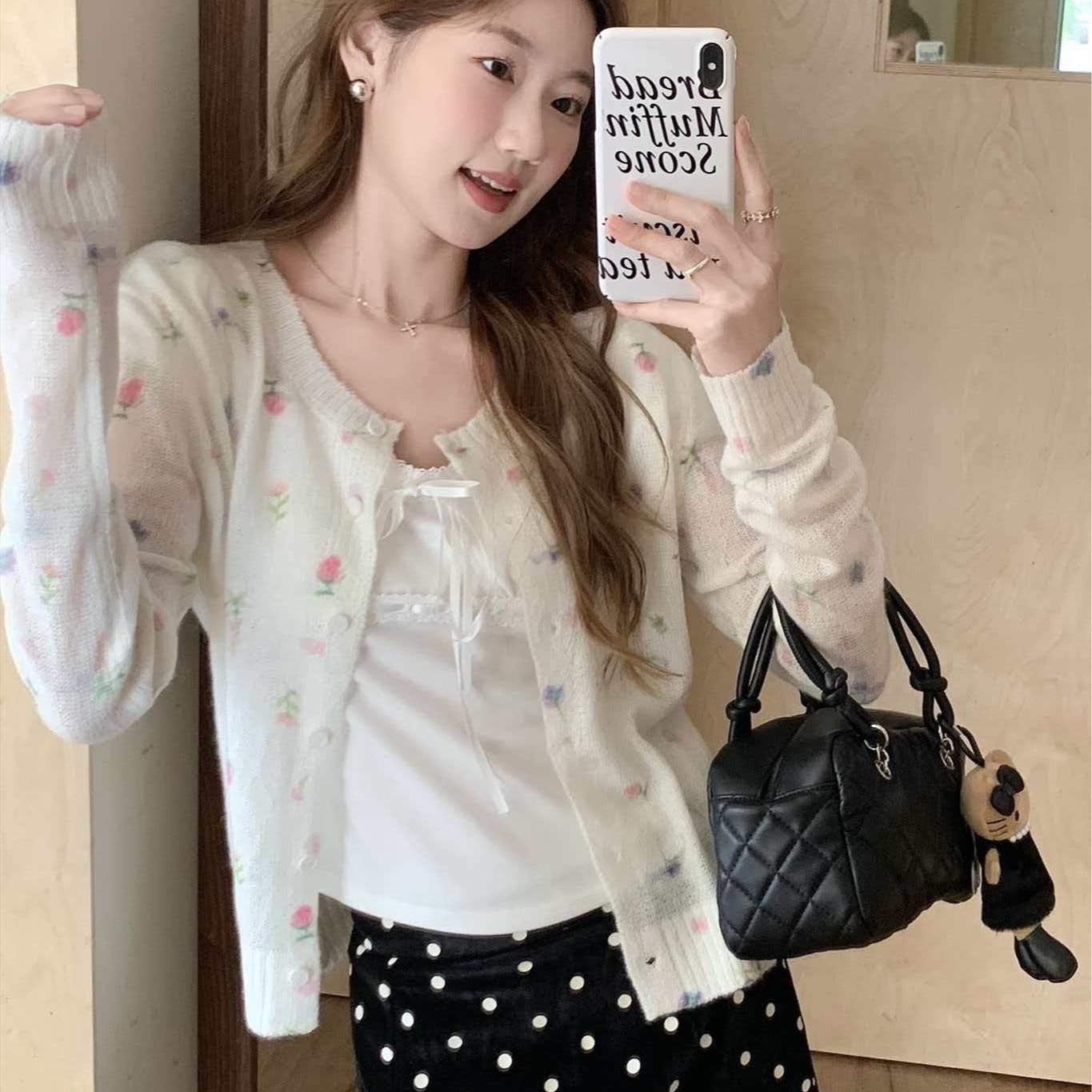 봄 여름 품격 꽃무늬 분위기 센스 니트 오픈 가디건 부드러운 바람 다용도 캐주얼 미니멀리즘 루즈핏 니트 스웨터