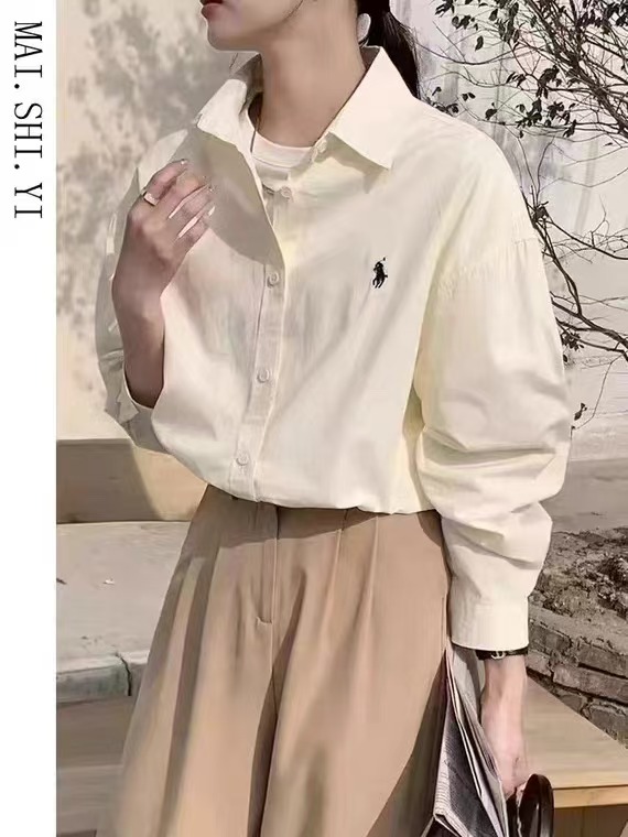 긴팔 여성 셔츠 2026 봄 새로운 한국 스타일 패션 루즈핏 폴로 칼라 셔츠 디자인 센스 프린트 외국 가스 맨위