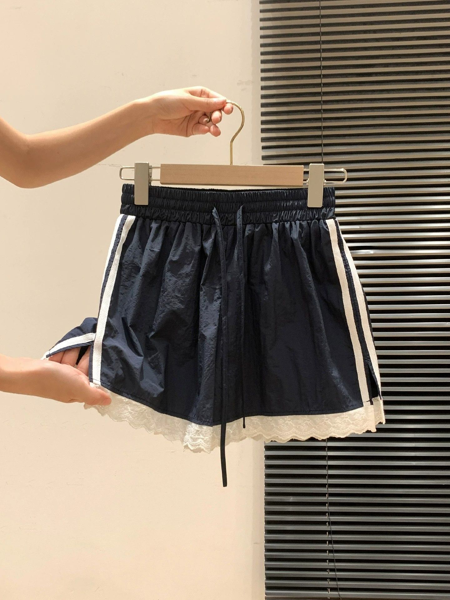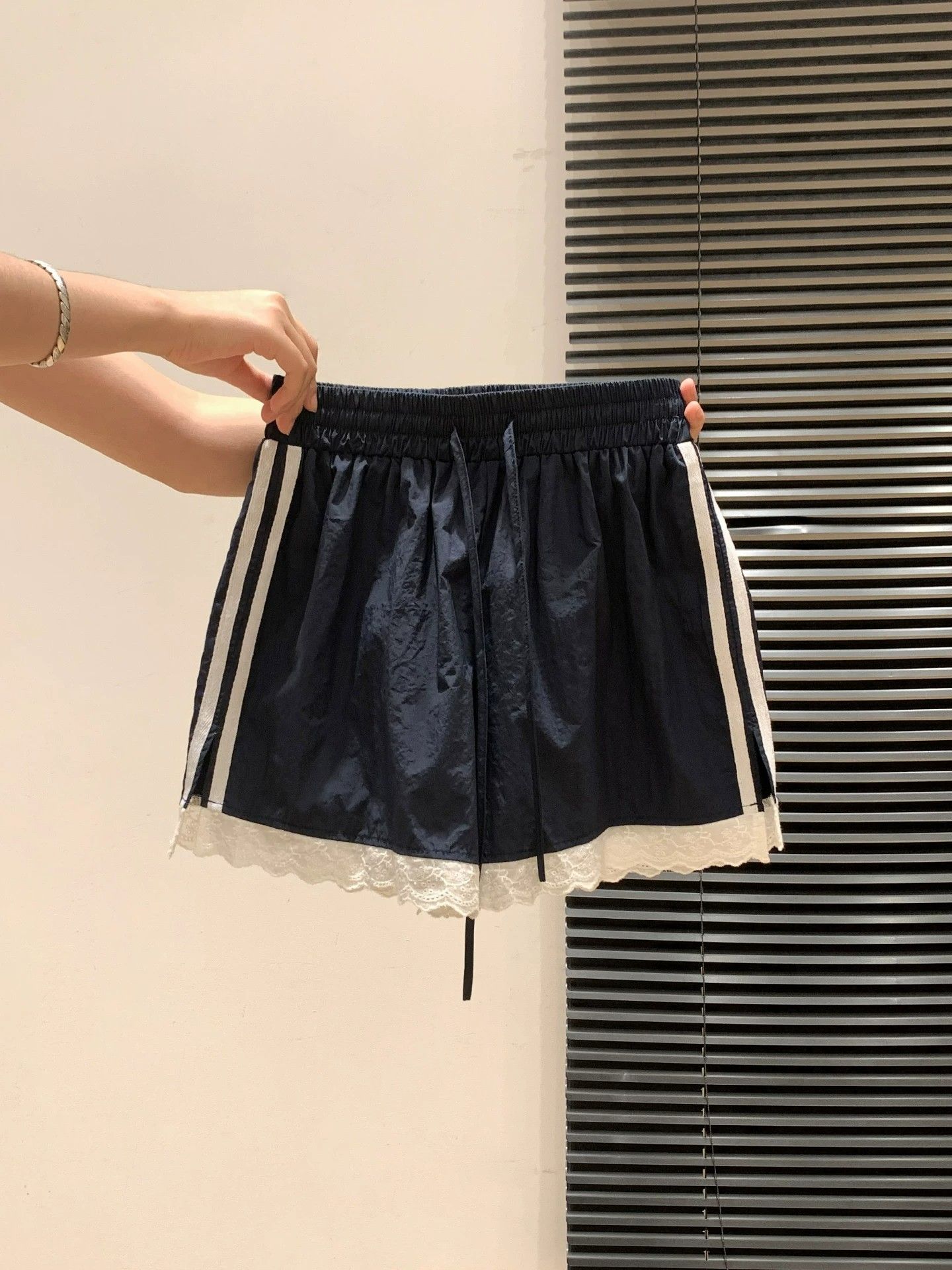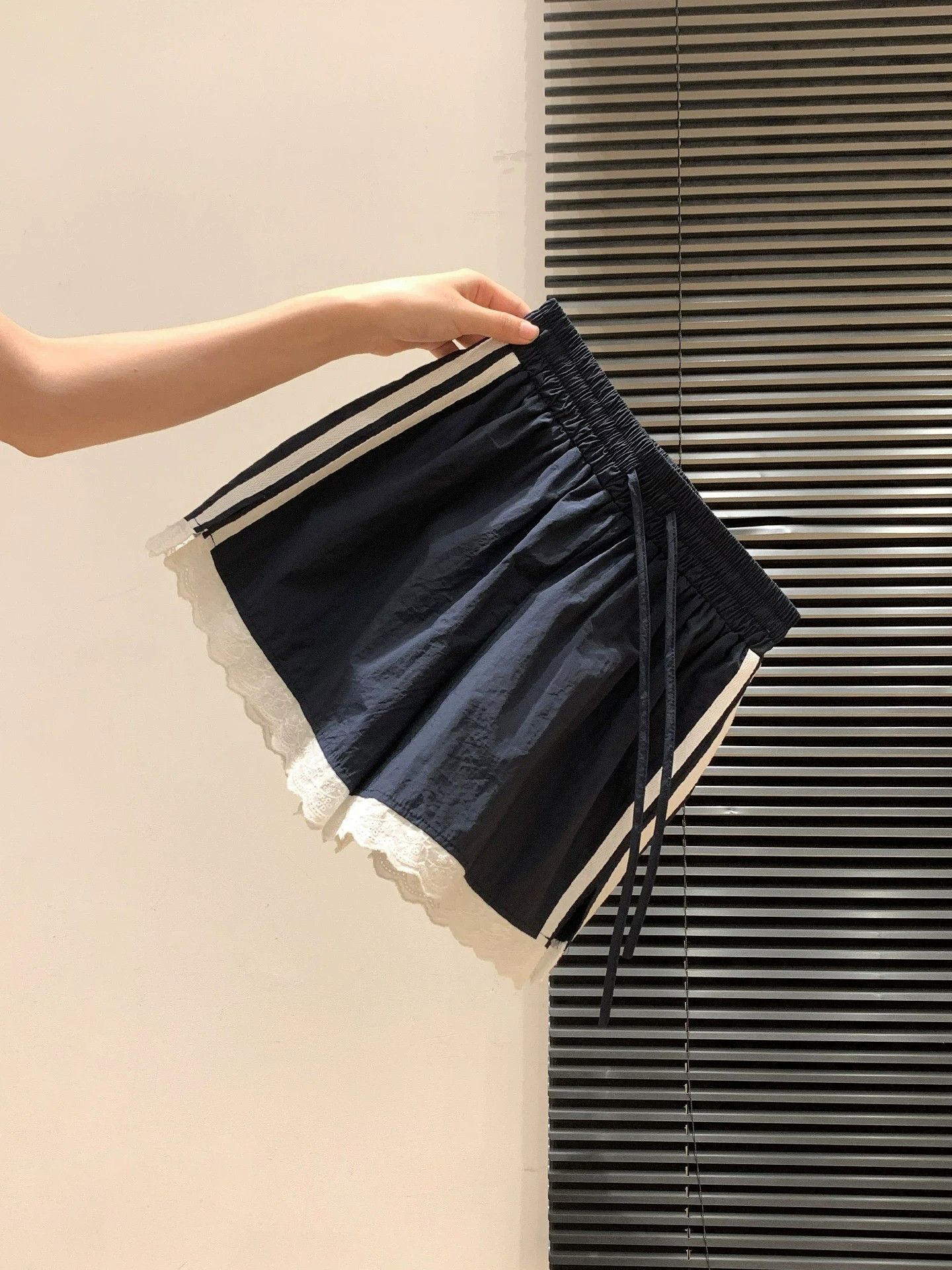 3 차원 허리 머리 블루 색상 레이스 밑단 미니멀리즘 2026 여름 새로운 달콤함 작은 대중 디자인 센스 운동 바지