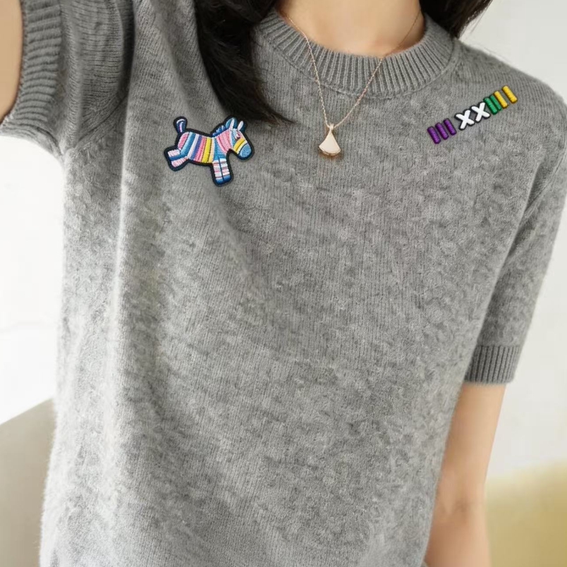 2026 여름 새로운 라운드 넥 다용도 반팔 니트 스웨터 여성 파란색 얼룩말 프린트 다용도 루즈핏 슬림해 보이는 맨위