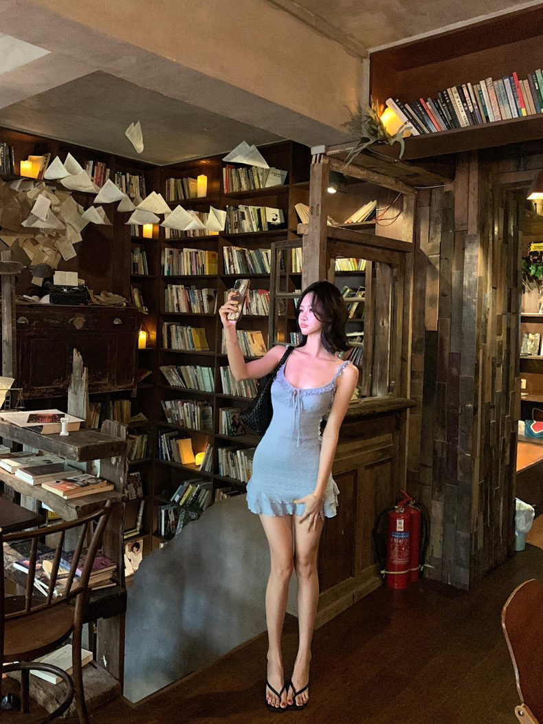 핫걸 바람 파란색 슬립 여성 드레스 여름 몸매 가꾸기 허리 수축 프릴 치마 순수한 욕망 타이트 타이트 스커트 미니 스커트