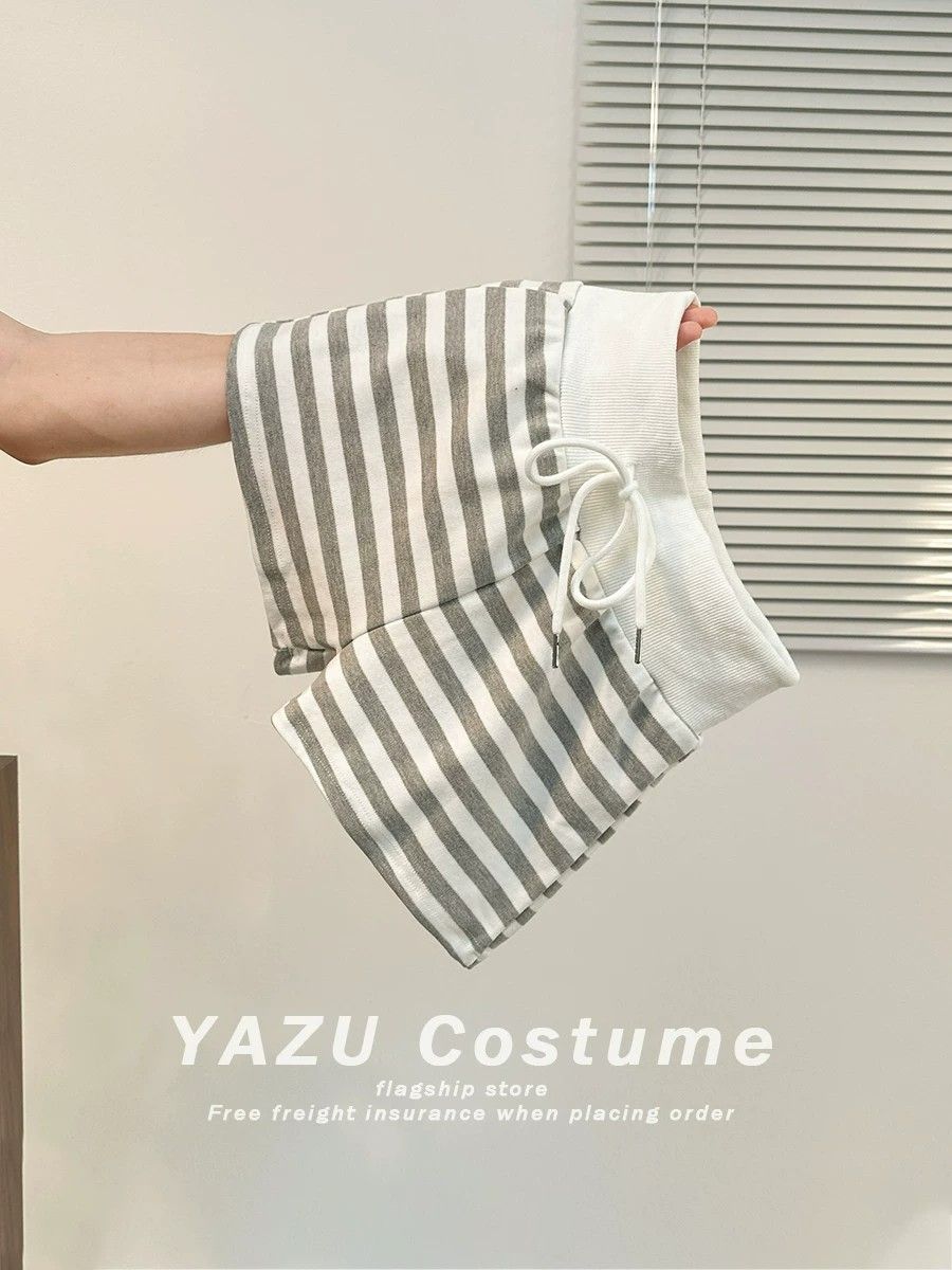 스트라이프 운동 반바지 여성 여름 로우 웨이스트 한 마디 느긋한 홈 파자마 바지 외출용 아메리칸 캐주얼 핫걸 뜨거운 바지