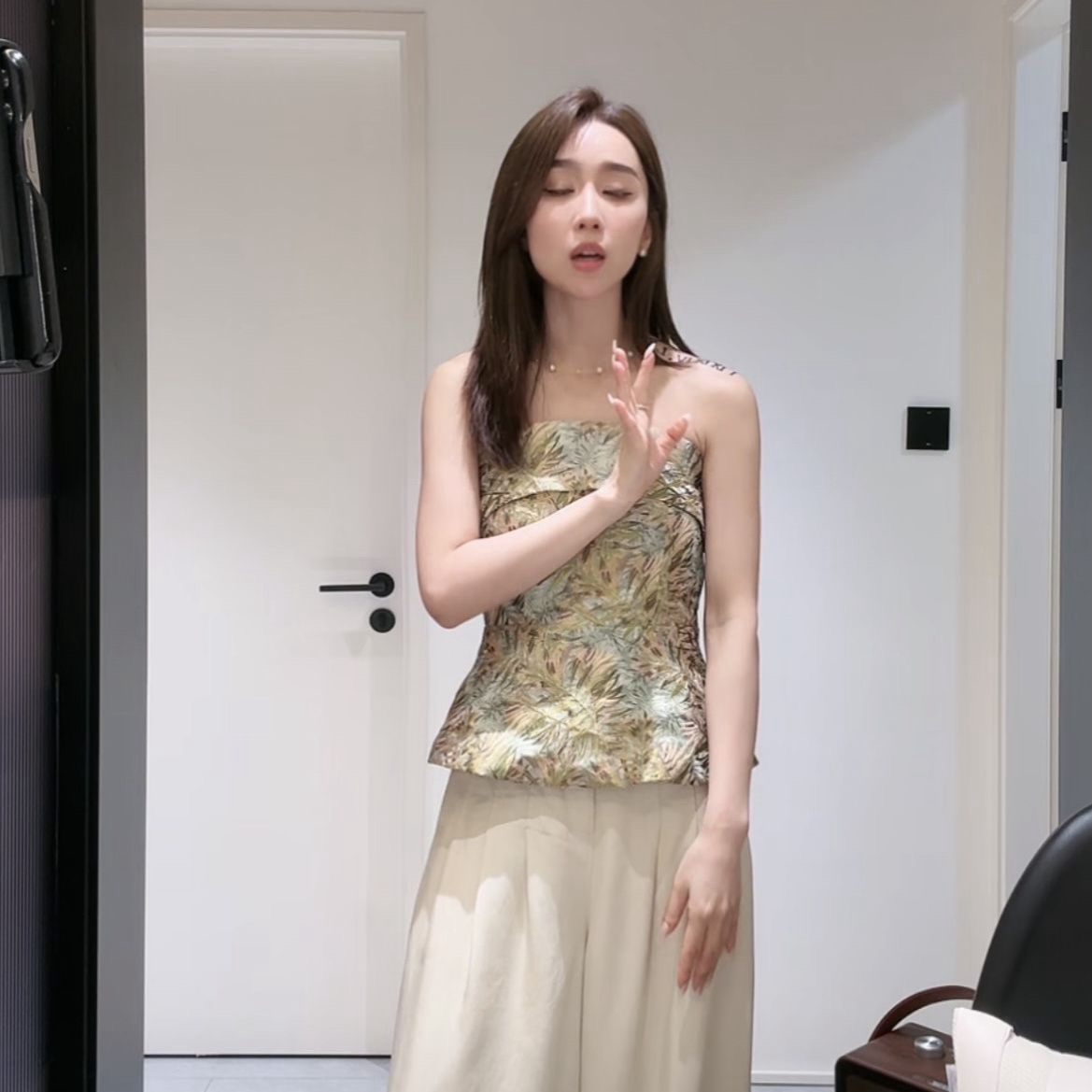 황색 캐미솔 2026 새로운 튀김 거리 고유 한 아름다운 고급 디자인 센스 다이아몬드 세팅 꼬집기 허리 작은 맨위 여름
