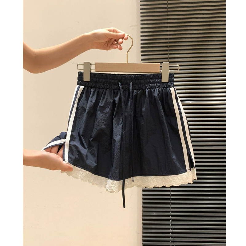 3 차원 허리 머리 블루 색상 레이스 밑단 미니멀리즘 2026 여름 새로운 달콤함 작은 대중 디자인 센스 운동 바지